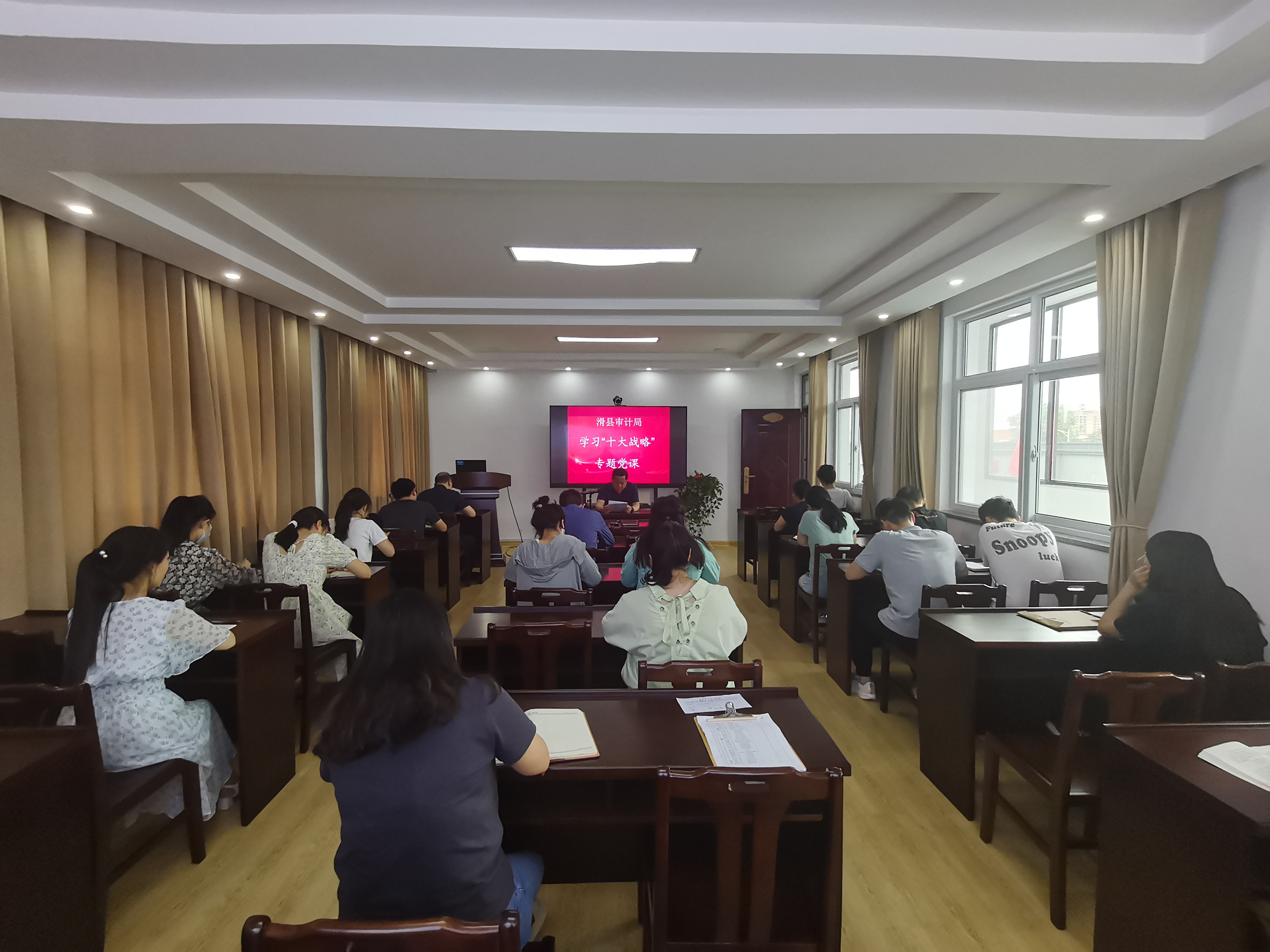 近日,为深入学习贯彻河南省第十一次党代会精神,锚定“两个确保”,实施“十大战略”,审计局召开学习“十大战略”专题党课,党课由审计局党组书记董向锋领学,审计局全体参学。