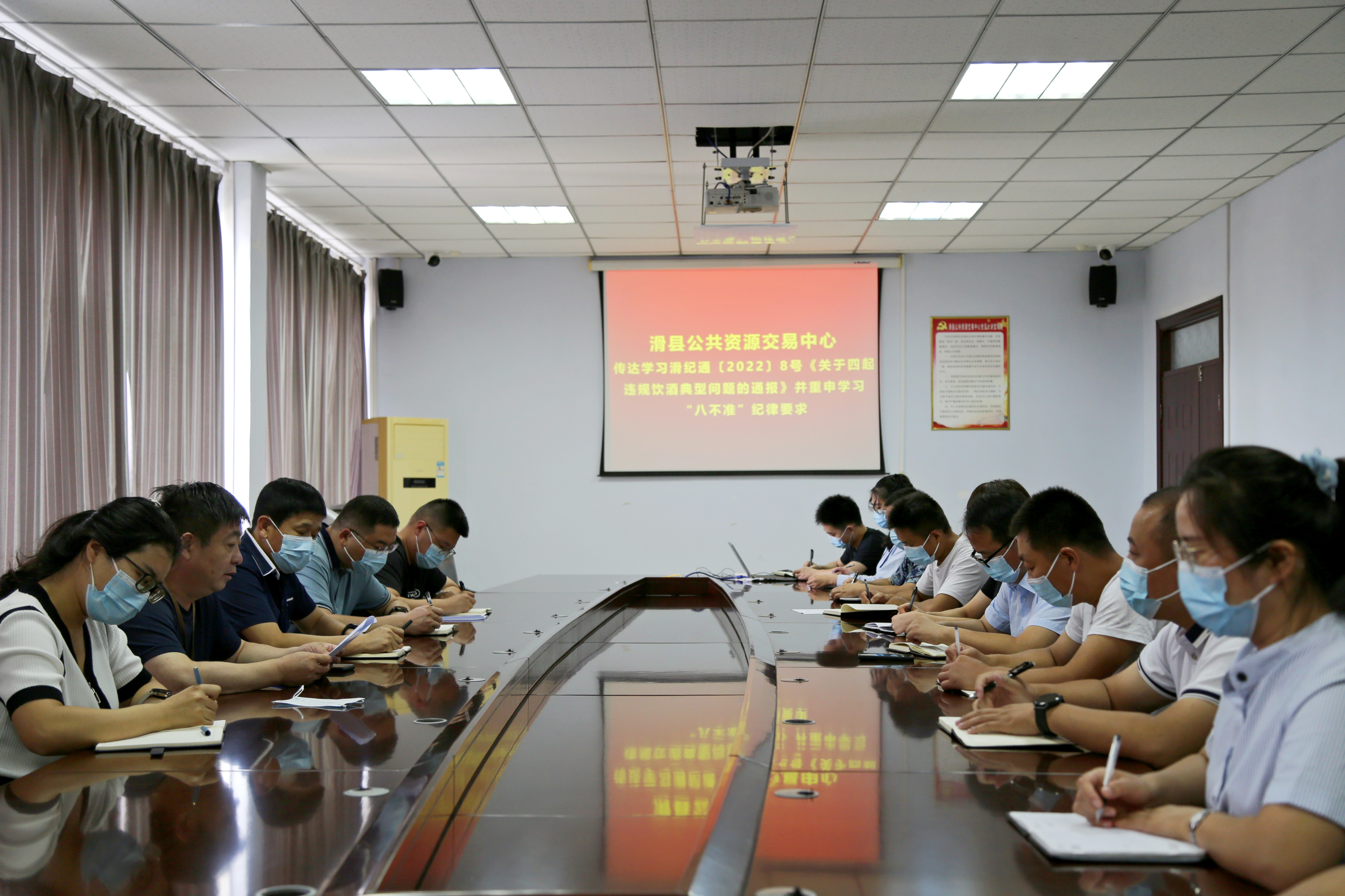 滑县公共资源交易中心:传达学习滑纪通〔2022〕8号《关于四起违规饮酒典型问题的通报》并重申学习“八不准”纪律要求