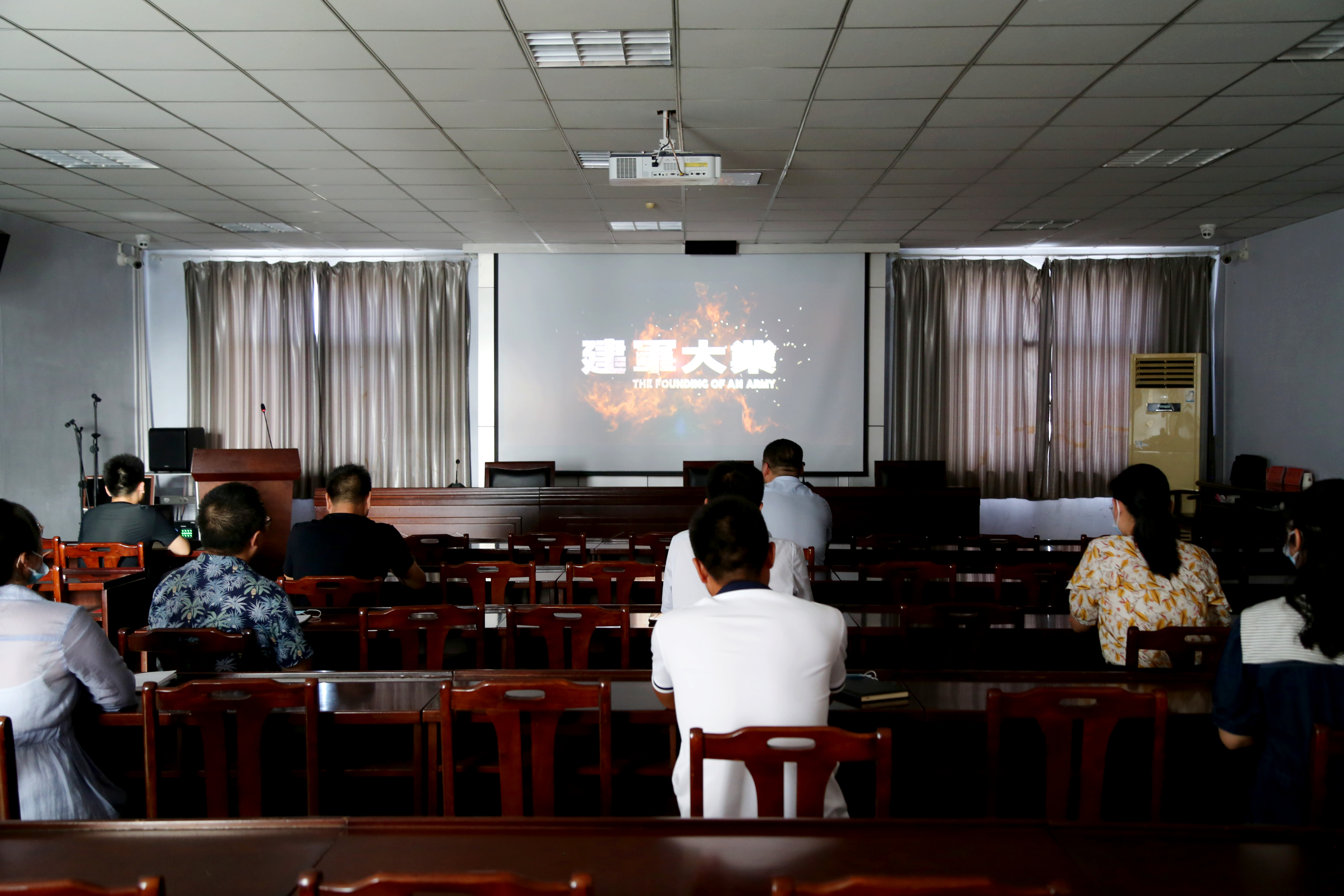 座谈会后,集中观看了红色电影《建军大业》,重温中国革命的斗争史,铭记革命先烈的奋斗精神,缅怀老一辈无产阶级革命家的丰功伟绩,引导干部职工自觉做到忠诚、干净、担当。