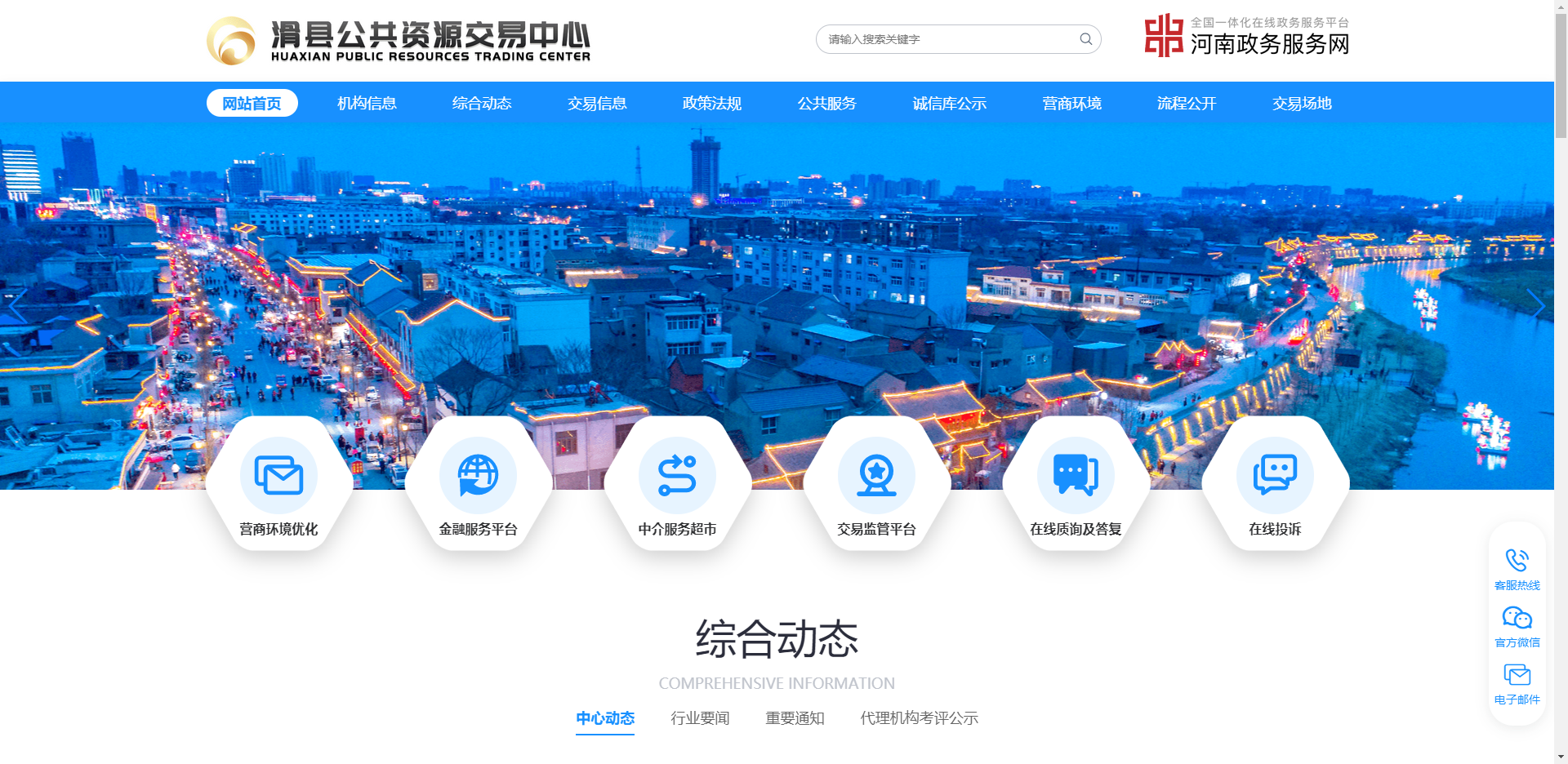 中心网站采用卡片式网页设计,主要包括综合动态、交易信息、开标日历、数据统计、便民服务五大模块,界面更加灵活、生动,可以为各交易主体提供更加便捷的服务。