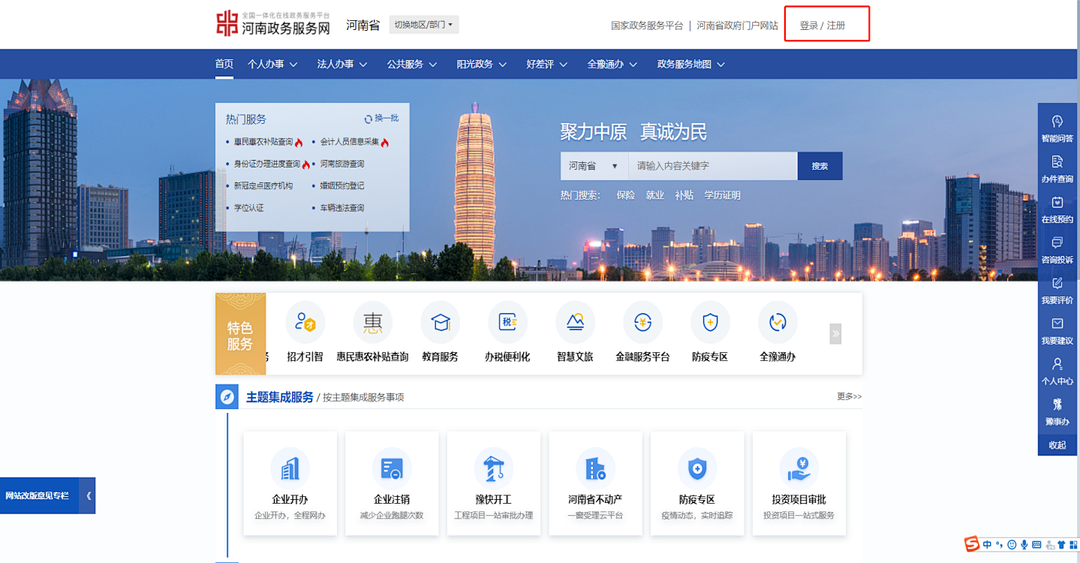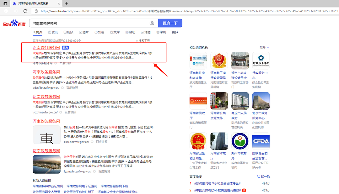 一、使用浏览器输入河南政务服务网网址:https://www.hnzwfw.gov.cn/或搜索河南省政务服务网进入。