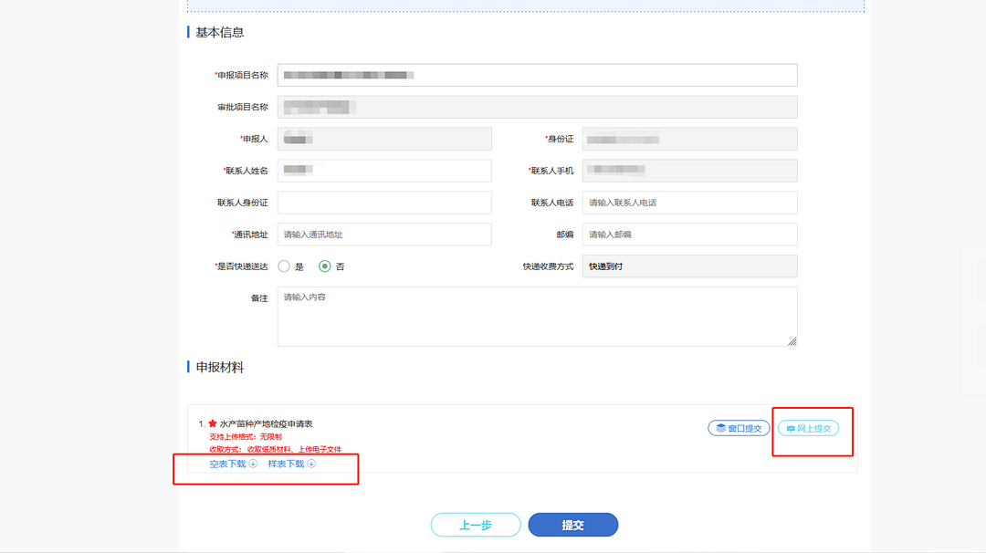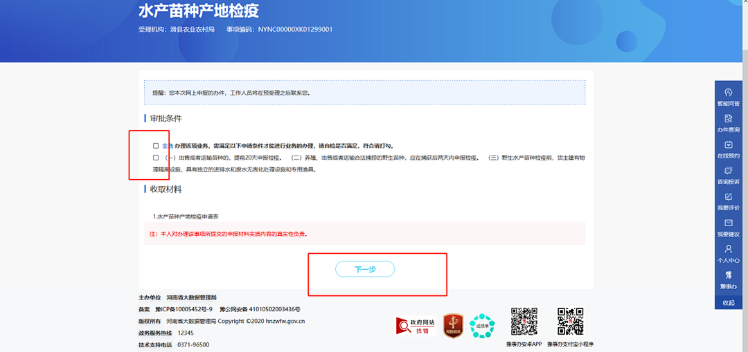 四、选择要办理的事项点击在线办理,可在右上角进行事项搜索。阅读并同意审批条件后,点击下一步,按照要求填写申请人信息,选择网上提交,提交事项所需材料,提交完成后即可完成申请。