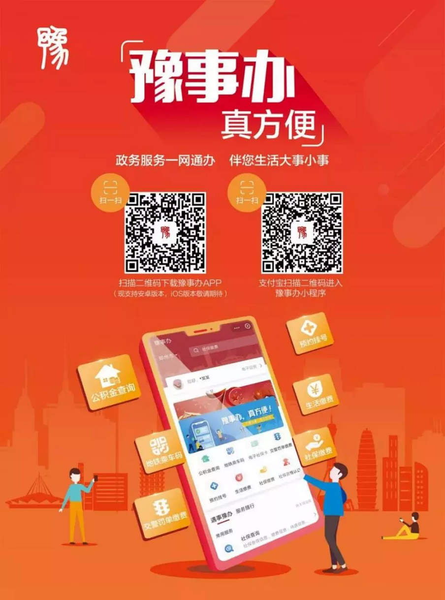 在“豫事办”APP办事,需要先下载豫事办APP(可在支付宝搜索或通过下方二维码扫描下载),安装并注册,然后就可办理相关事宜。我省的“豫事办”APP首批接入了税务、人社、教育、公安、卫健、住建、民政、金融等多项热点事项。