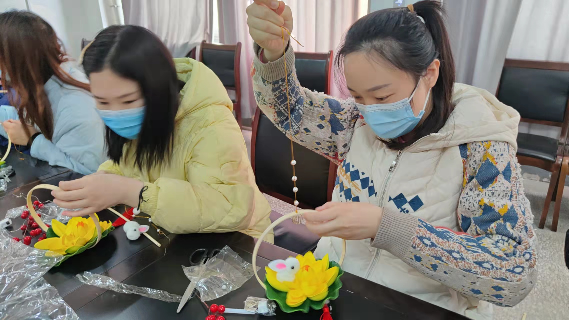 活动中,工作人员将提前准备好的制作花灯的材料进行发放,并向大家详细讲解花灯的制作步骤,大家便迫不及待地在工作人员的指导下做灯架、连灯饰、挂灯线。活动现场,大家相互帮助、相互学习,其乐融融。经过半个多小时的不懈努力,一个个漂亮的花灯呈现在眼前,不仅让现场透着浓浓的节日气氛,也让大家进一步感受到中国传统节日的文化魅力。