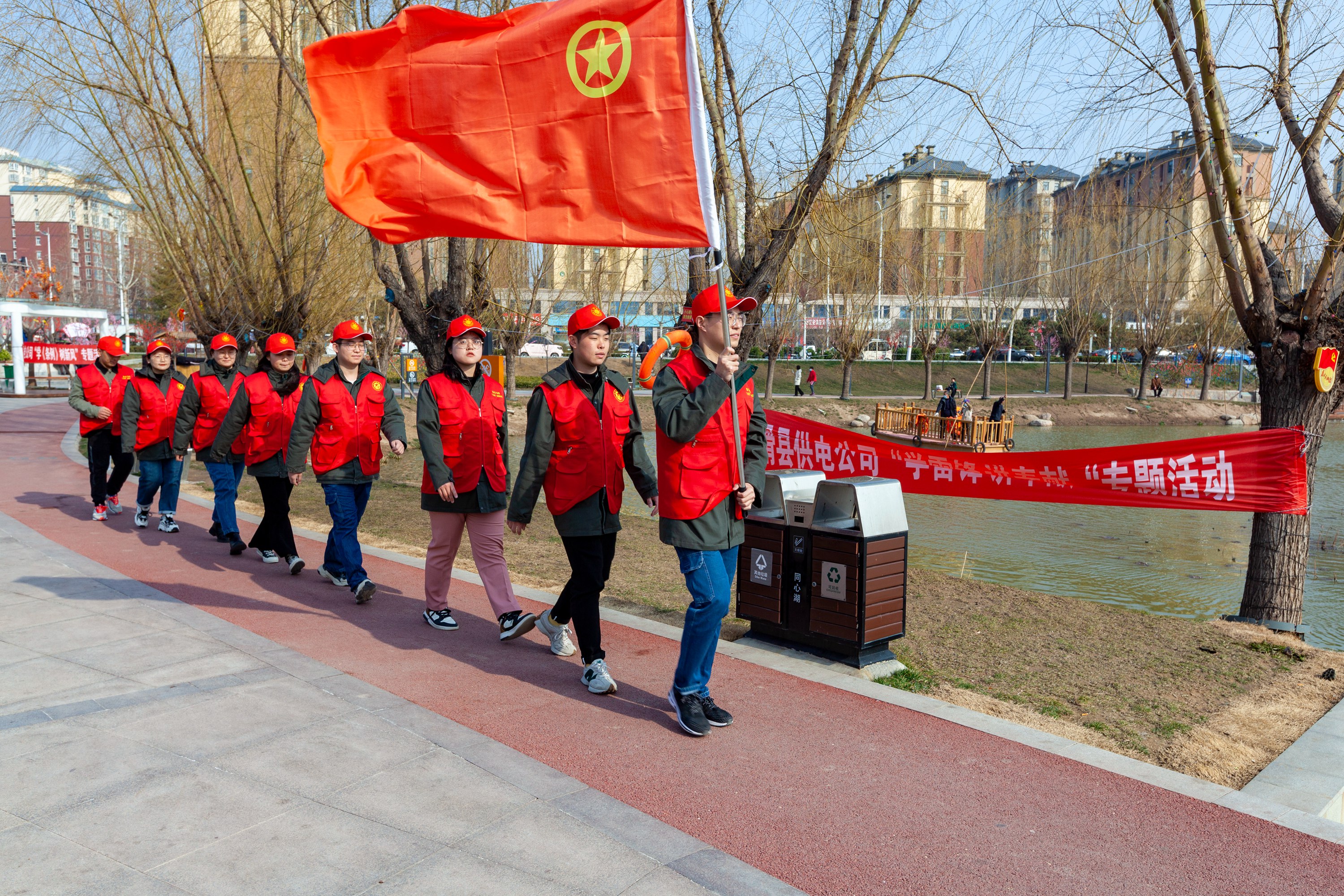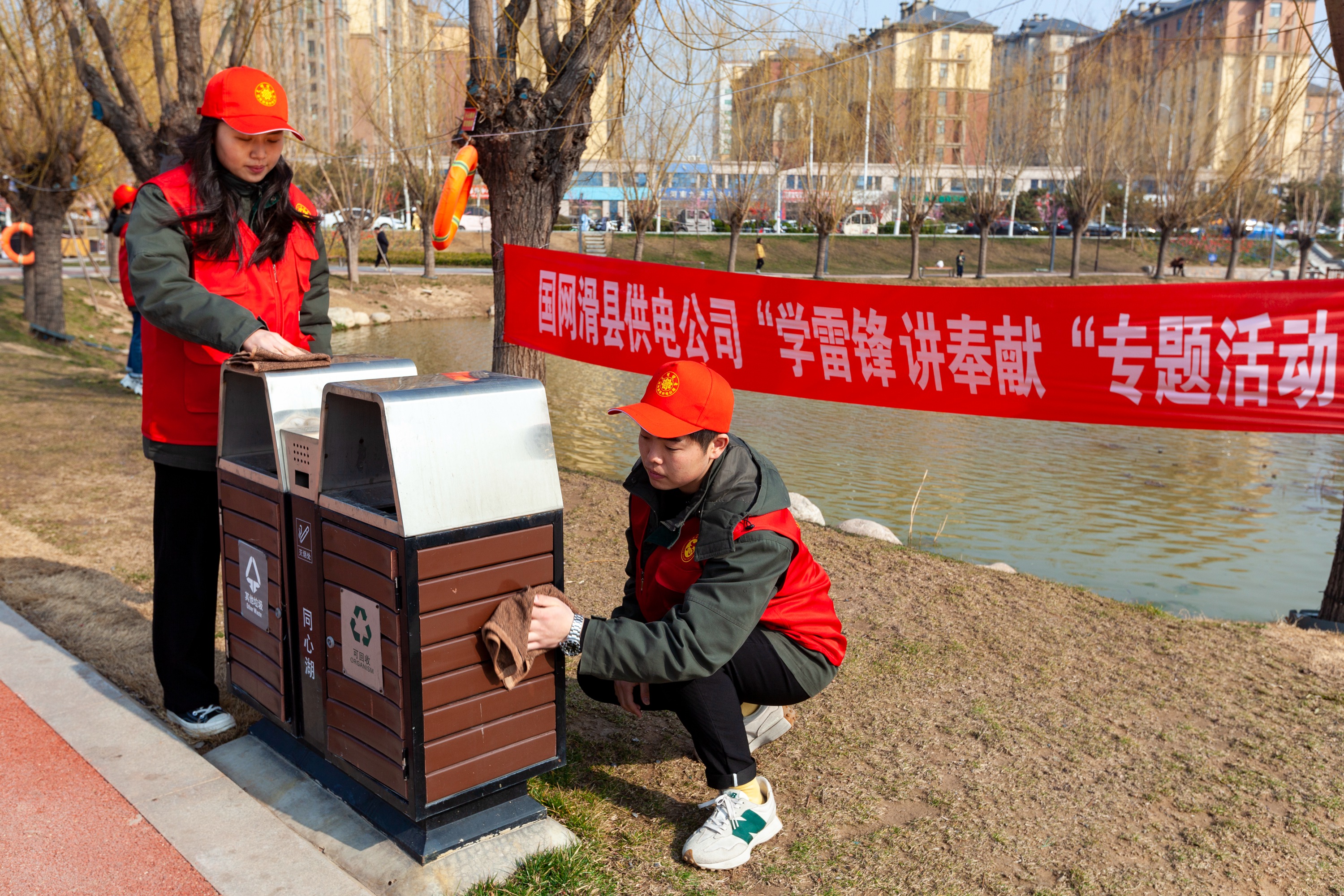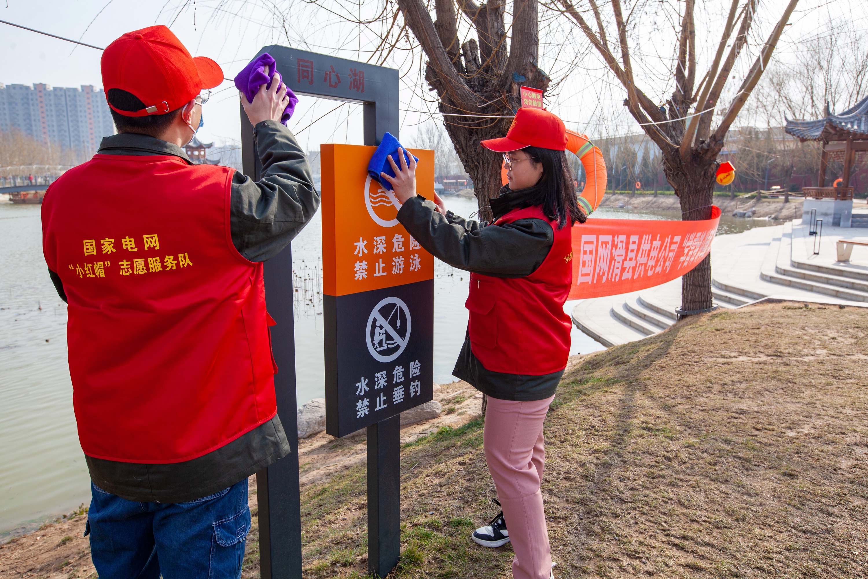 3月2日,在滑县同心湖公园,国网滑县供电公司10余名“小红帽”青年志愿者正在开展“学雷锋 讲奉献”志愿服务活动。