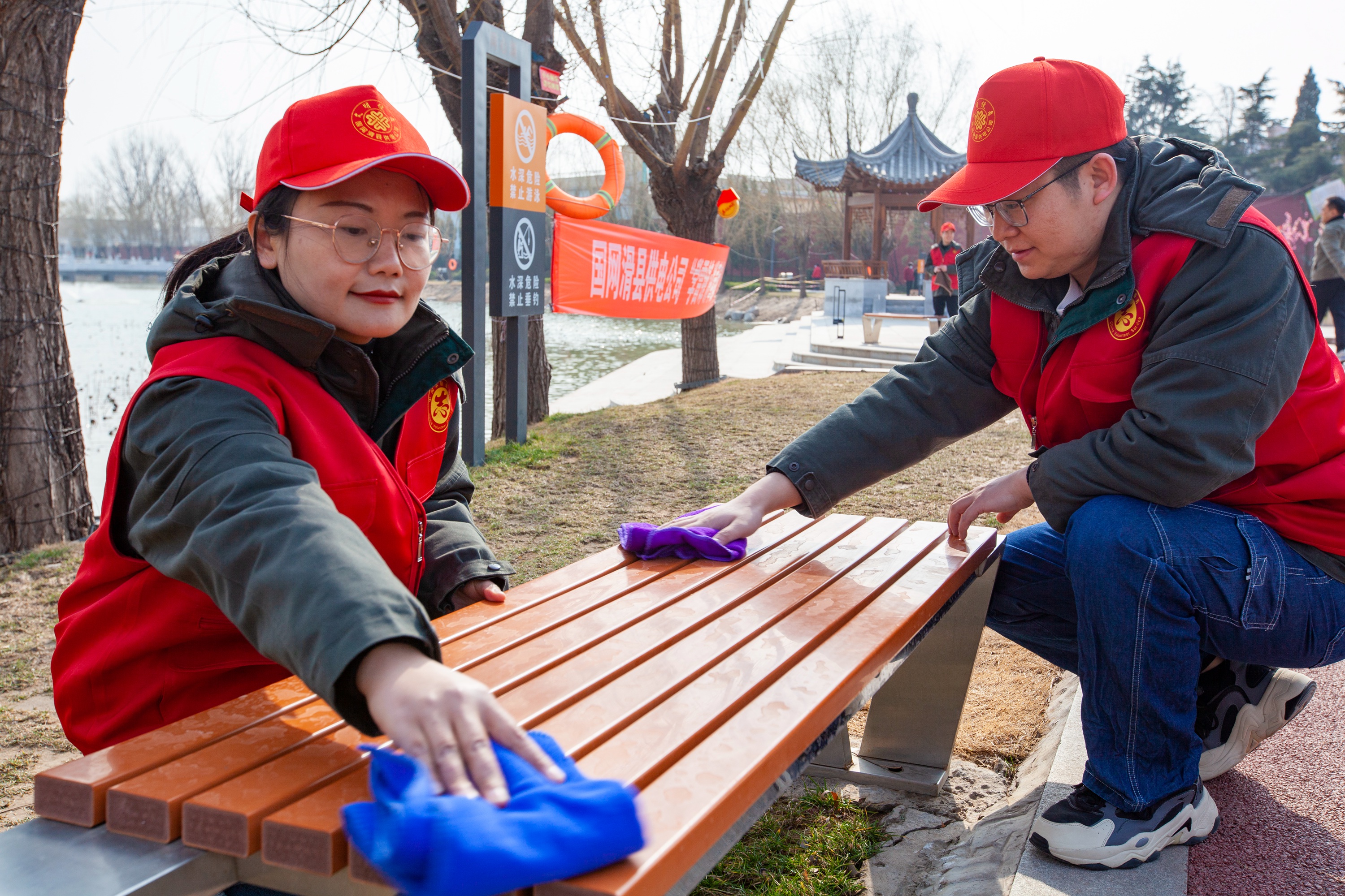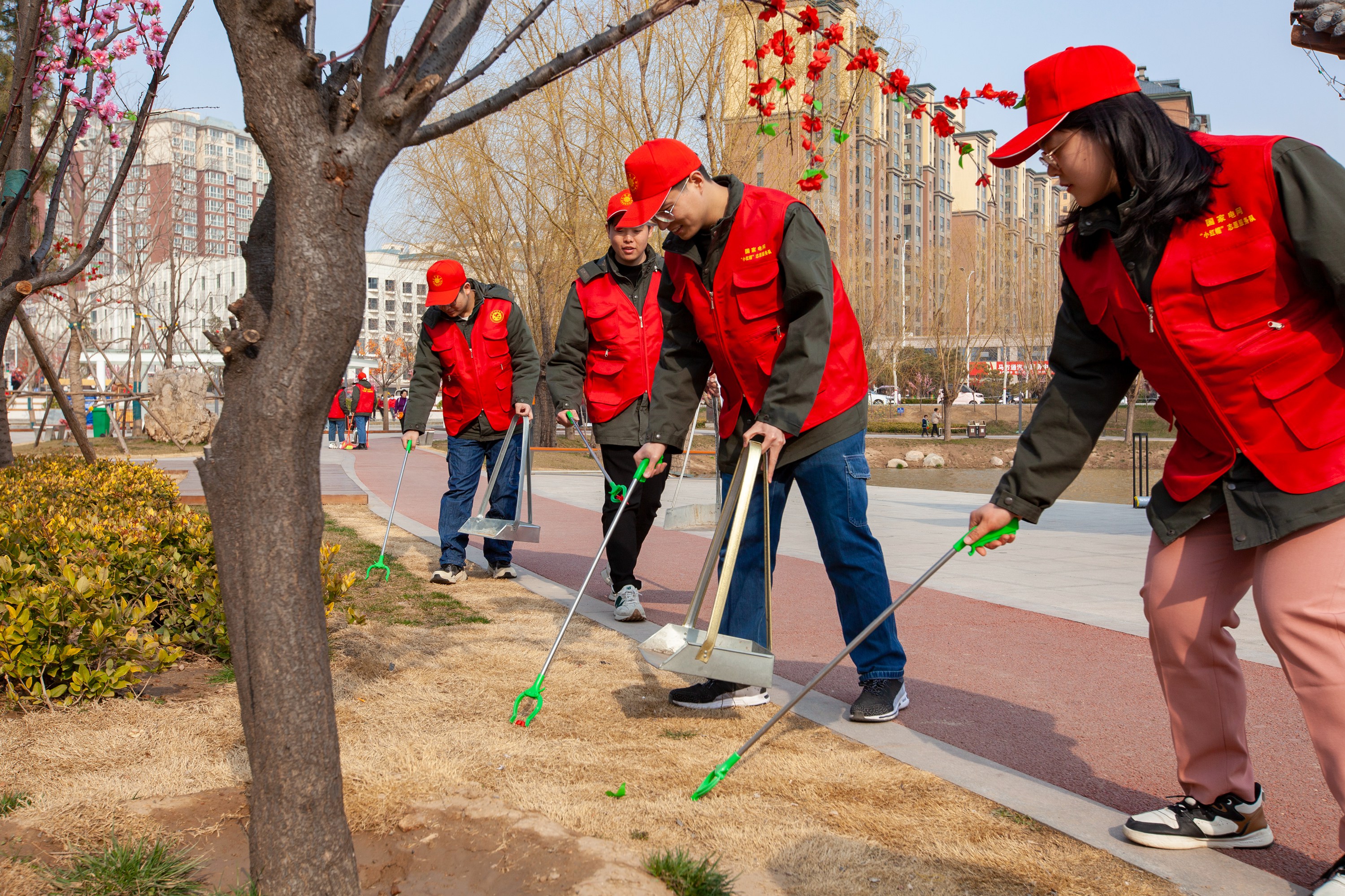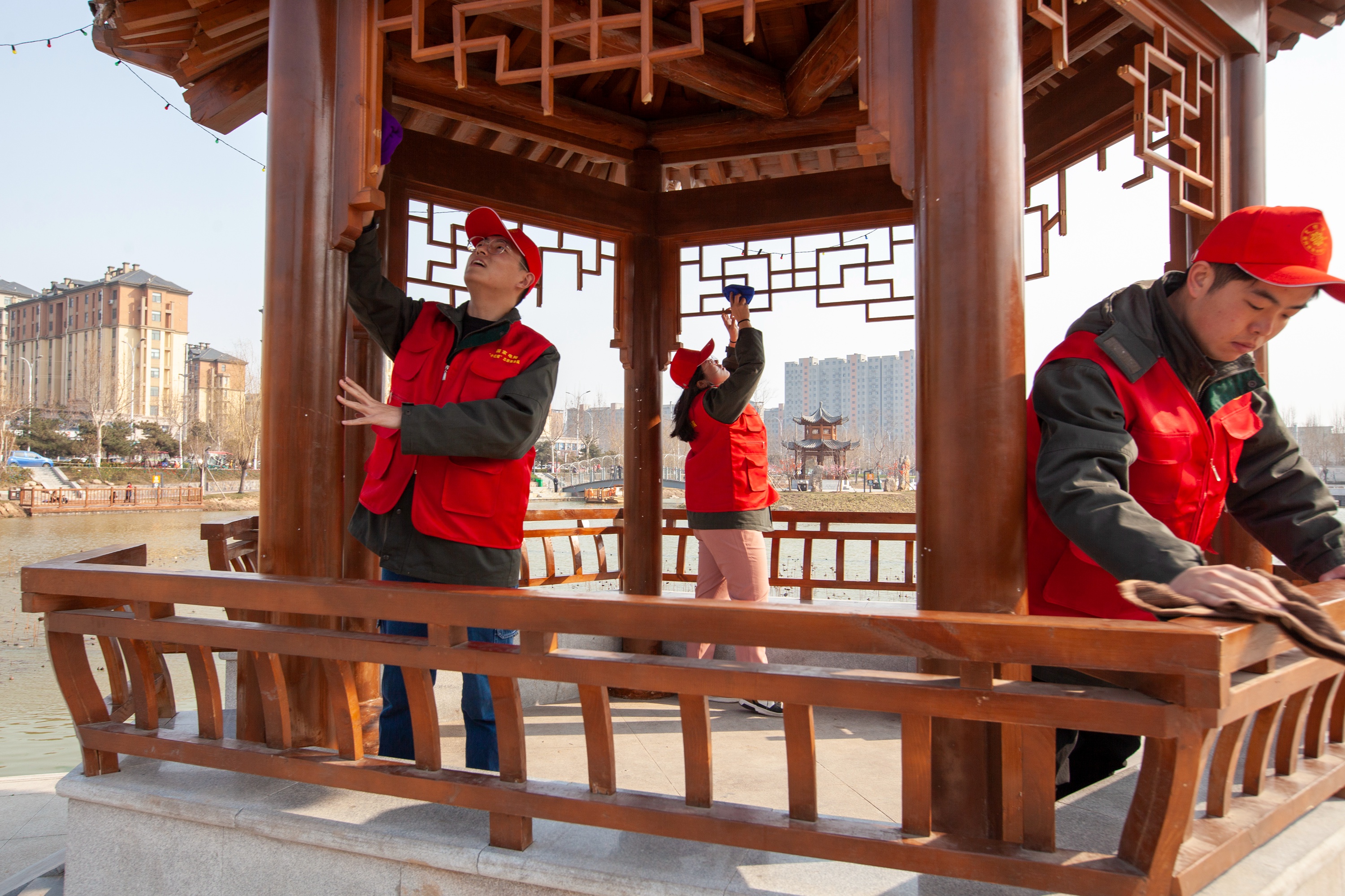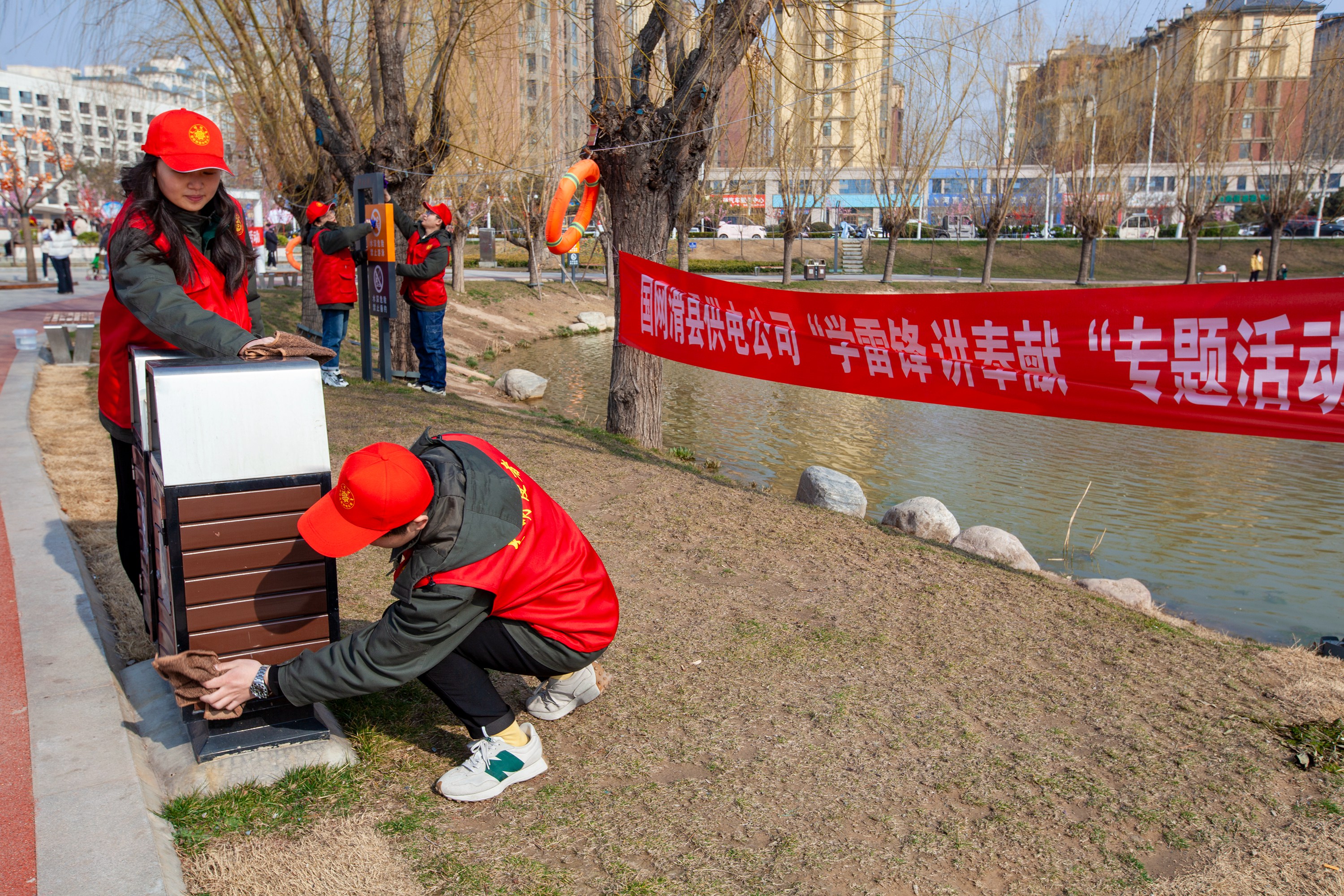 3月2日,在滑县同心湖公园,国网滑县供电公司10余名“小红帽”青年志愿者正在开展“学雷锋 讲奉献”志愿服务活动。
