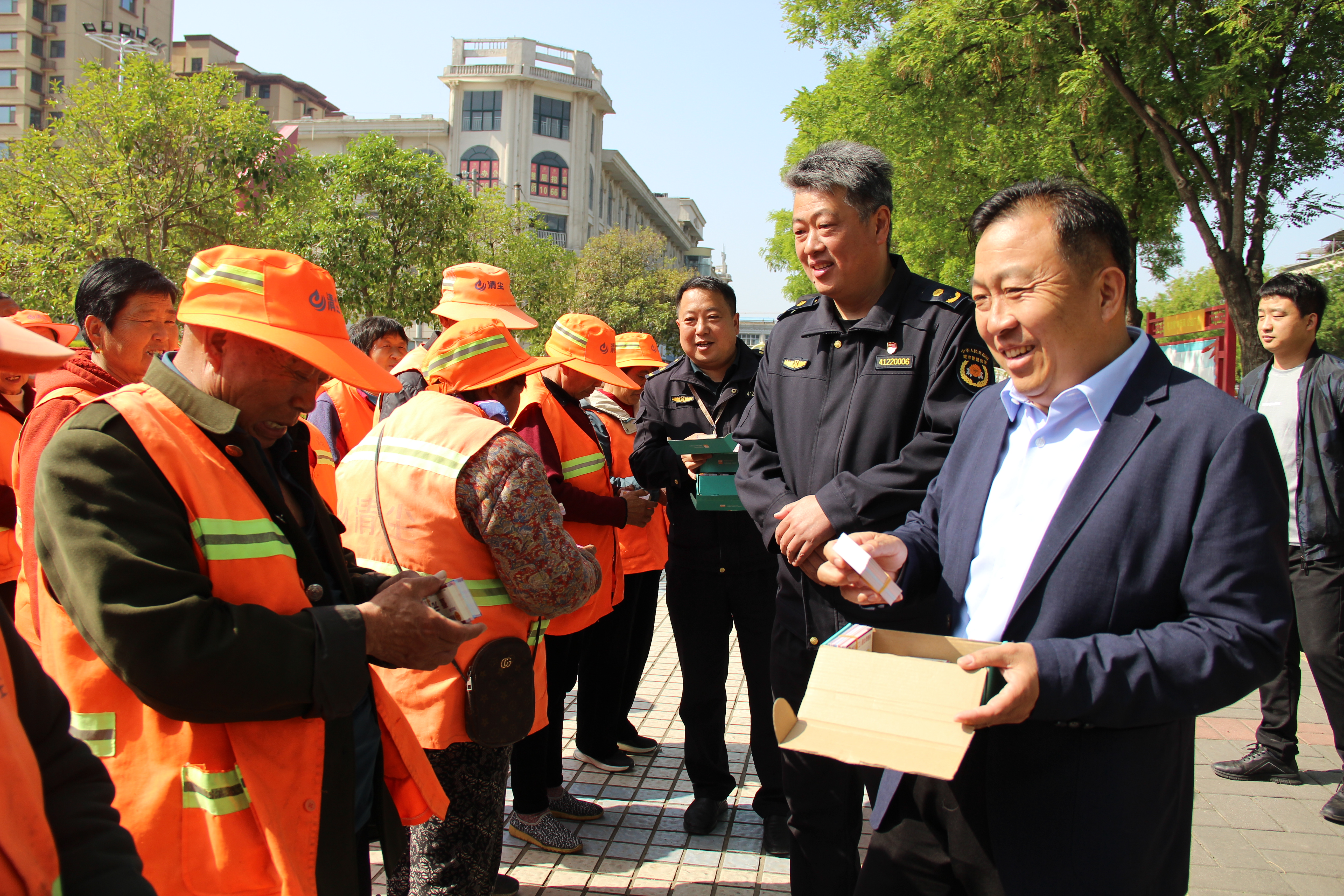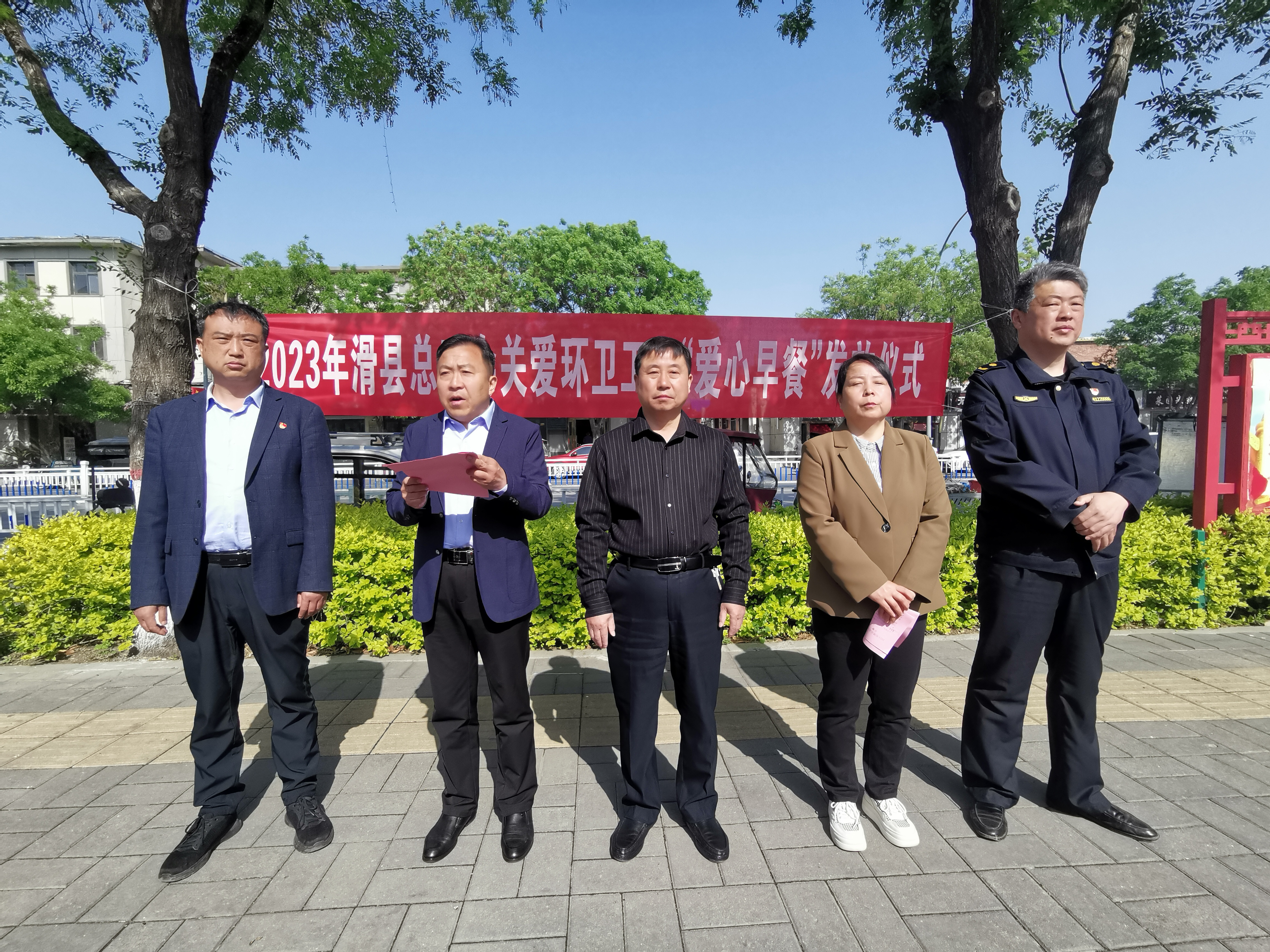 为落实党的二十大精神和贯彻省总“五大行动、十件实事”,进一步推动全县民生实事项目落地落细,把党和政府的关怀、工会组织的温暖及时送到广大职工群众的心坎上,向奋战在城市保洁一线的环卫工人致以崇高的敬意。4月27日上午,县总工会举行滑县2023年关爱环卫工人爱心早餐发放仪式,县政协副主席、县总工会主席郑进武,县总工会党组副书记、常务副主席李莉,县城管局党组书记、局长刘智勇,县总工会党组成员、困难帮扶中心主任姬生辉,清尘公司相关负责人,部分环卫工人代表和爱心早餐商家出席活动。
