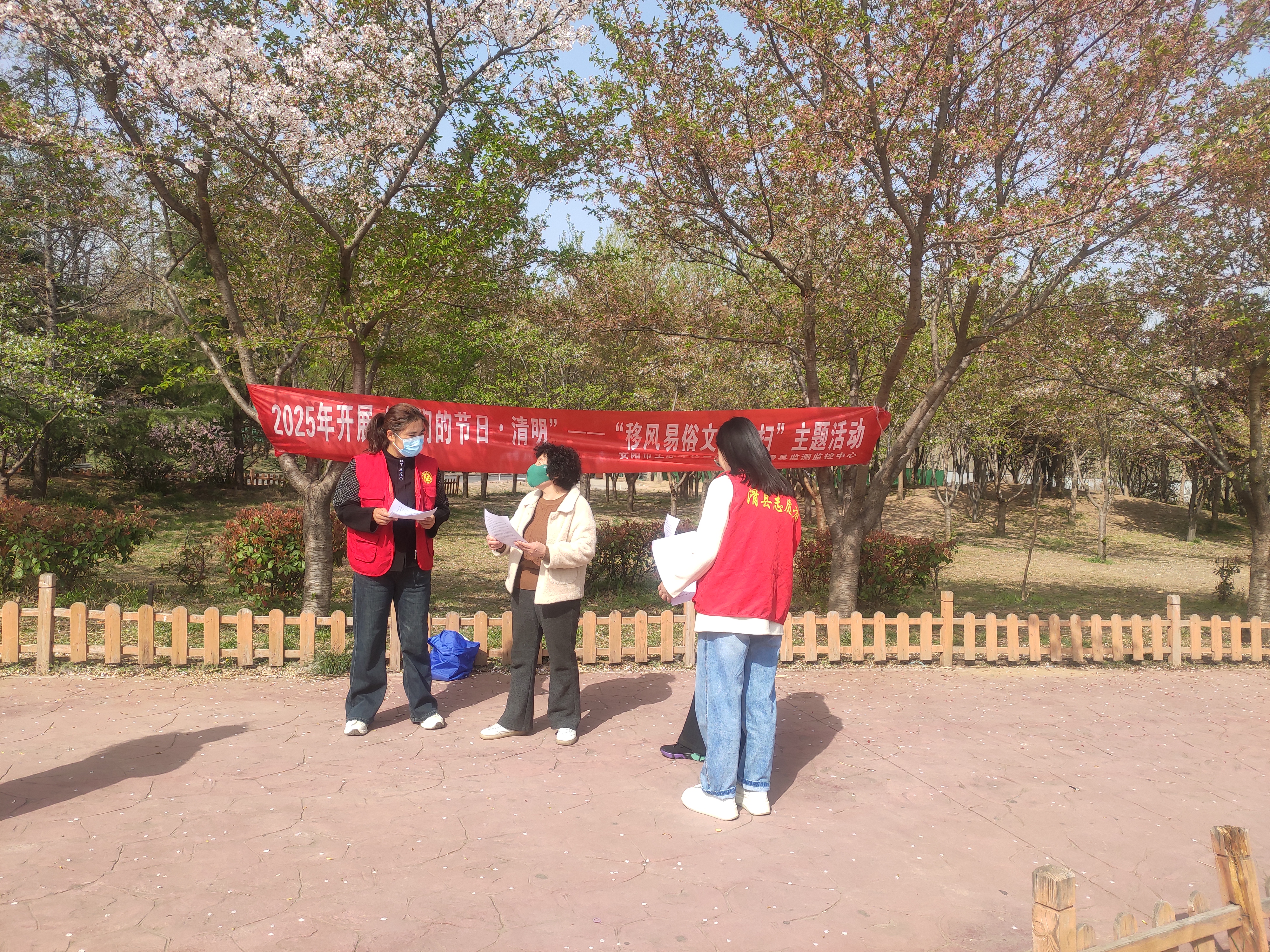 又是一年芳草绿,清明时节寄哀思。清明节是我们缅怀先烈、祭奠逝者、追思故人的传统节日。为摒弃祭祀陋习,树立文明祭祀新风尚,持续推动新时代移风易俗,安全环保的祭祀新风,4月3日上午,安阳市生态环境局滑县分局组织志愿者在滑县森林公园开展“我们的节日·清明”——“移风易俗 文明祭扫”主题活动。
