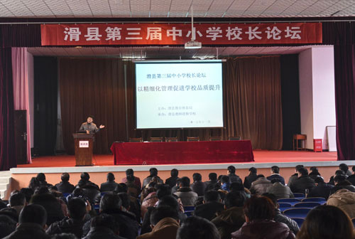 11月27日,滑县第三届中小学校长论坛在县教师进修学校学术报告厅举行,来自全县各中小学的正副校长、名师学者、优秀教师代表300余人齐聚一堂,探讨学校精细化管理的经验和典型做法,促进全县办学品质的提升。 县一中、道口镇第二初中、新区英民初中、城关镇育红小学等13名优秀校长代表做了精彩演讲。论坛还邀请了知名教育教学专家 、濮阳市油田第四高级中学校长张宏旭做了学术报告。与会全体认真聆听,纷纷表示很受启迪,要把学到的新知识、新思想运用到今后的实际教育工作中。