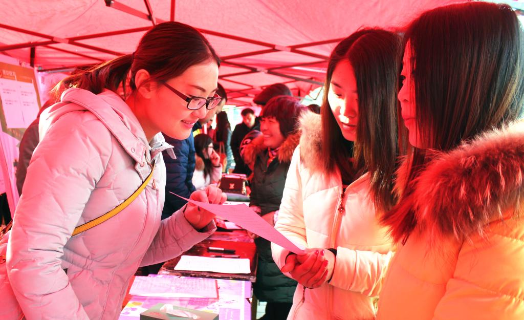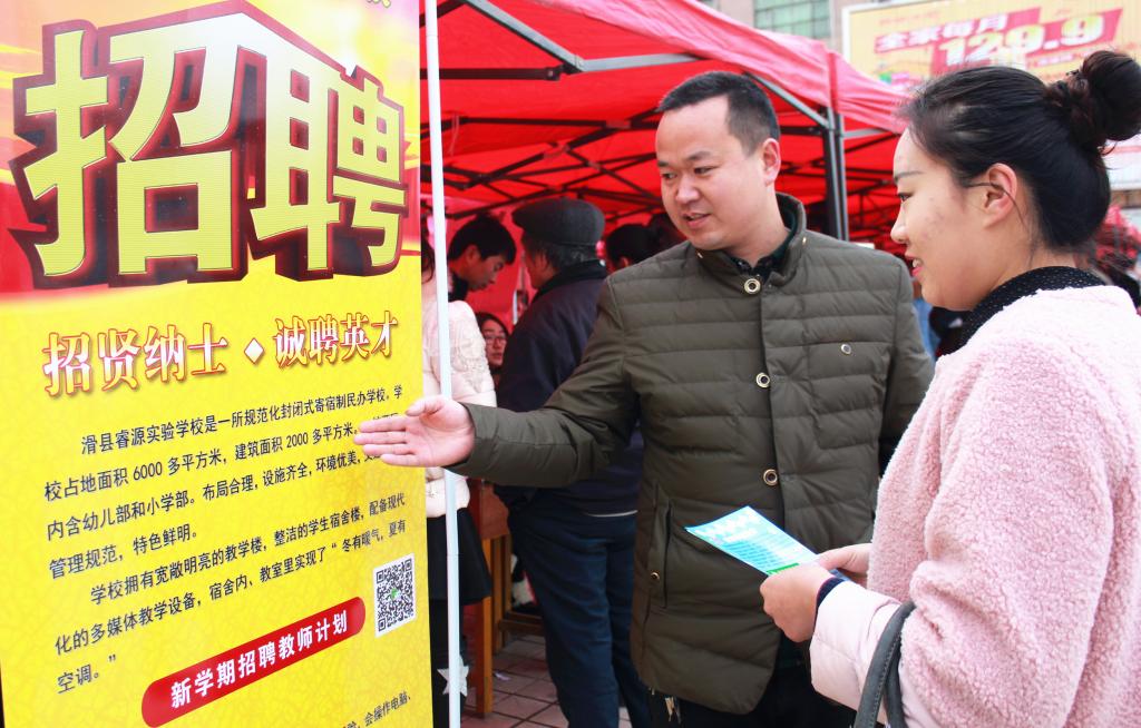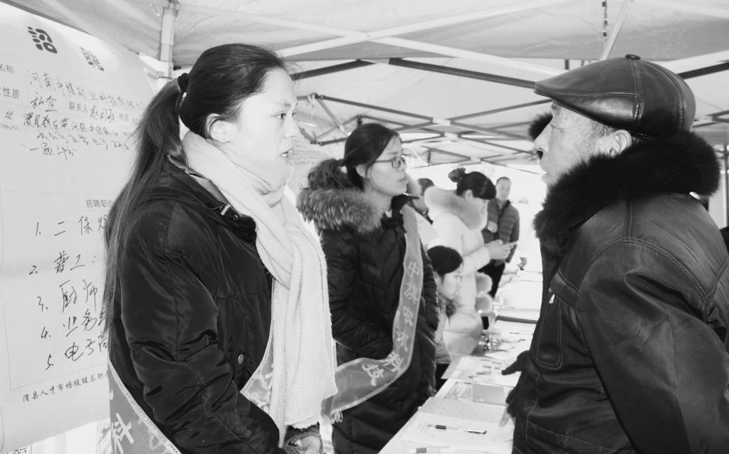 2月14日,在滑县2016年春季综合类人才招聘会现场,应聘者正在了解招聘信息。2月14日是春节长期后上班的第一天,滑县举办2016年“春风行动”春季综合类人才招聘会,为农村转移就业人员、就业困难人员和大学毕业生提供就业服务。当天,共有73家用工单位参加招聘会,提供就业岗位3500余个,吸引3700多名求职者到场应聘,近2000人现场达成就业意向。
