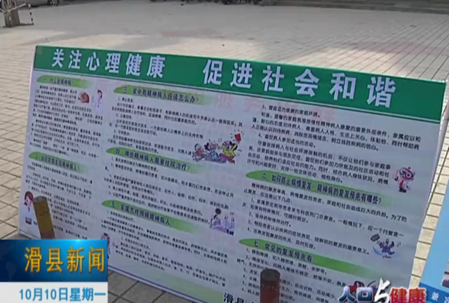 10月10日是世界精神卫生日,我县开展了形式多样的宣传活动,普及精神卫生知识,提高市民群众自我保健意识。