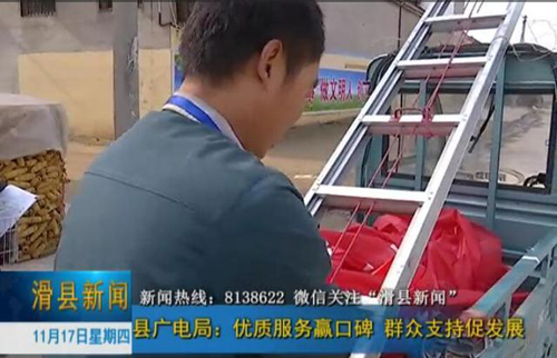 在白道口镇许村,广电员工正在为村民许方超免费安装有线电视和宽带,全新的政策,大幅度的优惠措施,让许方超第一时间选择了广电网络。