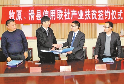 除了为贫困户量身定做的“惠农扶贫贷”特惠金融产品外,今年9月,我们还与县政府签订了《扶贫合作协议》,明确了扶贫信贷资金让利转移扶贫模式,建立了“银行+企业+贫困户”“政府+银行+企业+贫困户”等创新型扶贫合作长效机制。