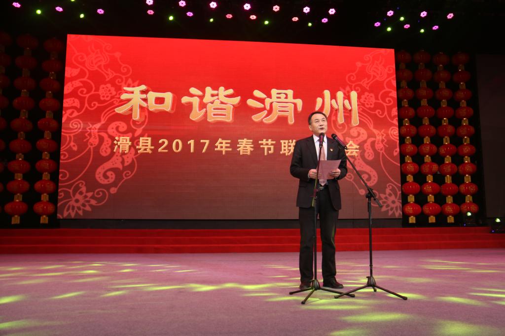 1月13日晚,县广电传媒中心1000平米演播大厅灯光璀璨、喜气洋洋;由县委、县政府主办,县委宣传部、县广电局承办的 “和谐滑州”2017年春节联欢晚会在这里隆重举行;安阳市委常委、县委书记董良鸿,县领导陈忠、李向前、王国民、陈俊江、李红、袁锐锋、侯德安、范俊杰、吴瑞军、李卫锋、杨振宇等现场观看了演出。