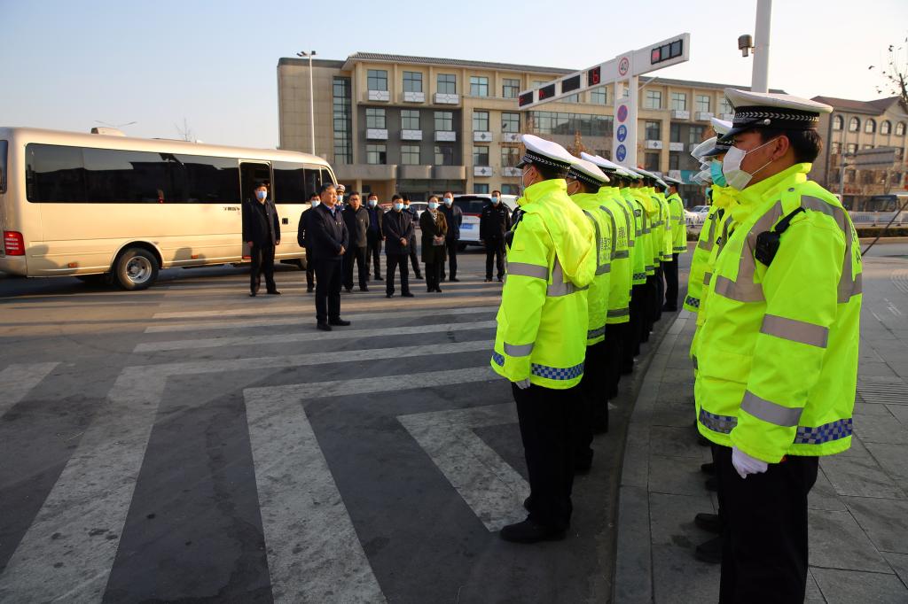 在县三八岗警亭,县委书记、县长陈忠,县领导郑进武、刘艳菊一行向广大交警致以节日的问候,对大家一年来的辛勤工作和默默付出表示肯定。陈忠说,交警工作很辛苦,春节期间仍然坚守一线,为保证广大群众的出行安全,不能与家人团聚,希望大家在春节期间继续发扬连续作战、不怕辛劳的作风,尽职尽责,全力保障道路交通安全畅通。
