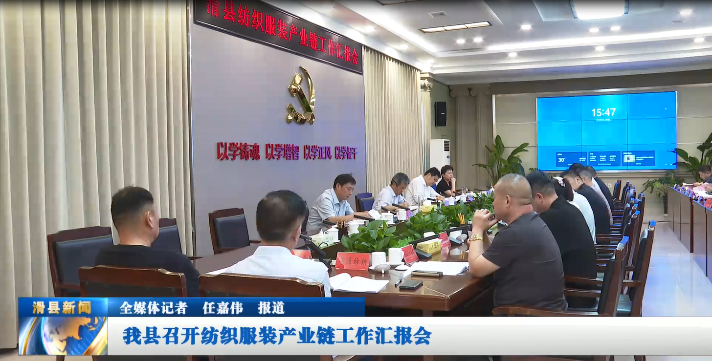 8月26日,市委常委、县委书记李明东,县委副书记、县长王军华专题听取纺织服装产业链工作汇报,安排部署下步工作。