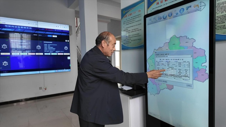 农业技术员黄国姓正在通过物联网设备管理系统查看农情。程永辉摄