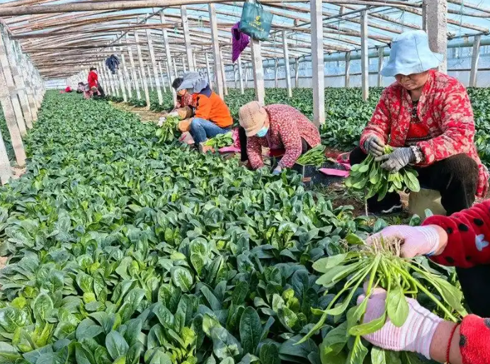 稳定的销路不仅让菠菜产业行稳致远,带动村集体经济与农户增收,更为周边群众打开了“家门口就业”的增收大门,催生了采收、分拣、包装等一系列就业岗位,吸引了周边群众就近务工。