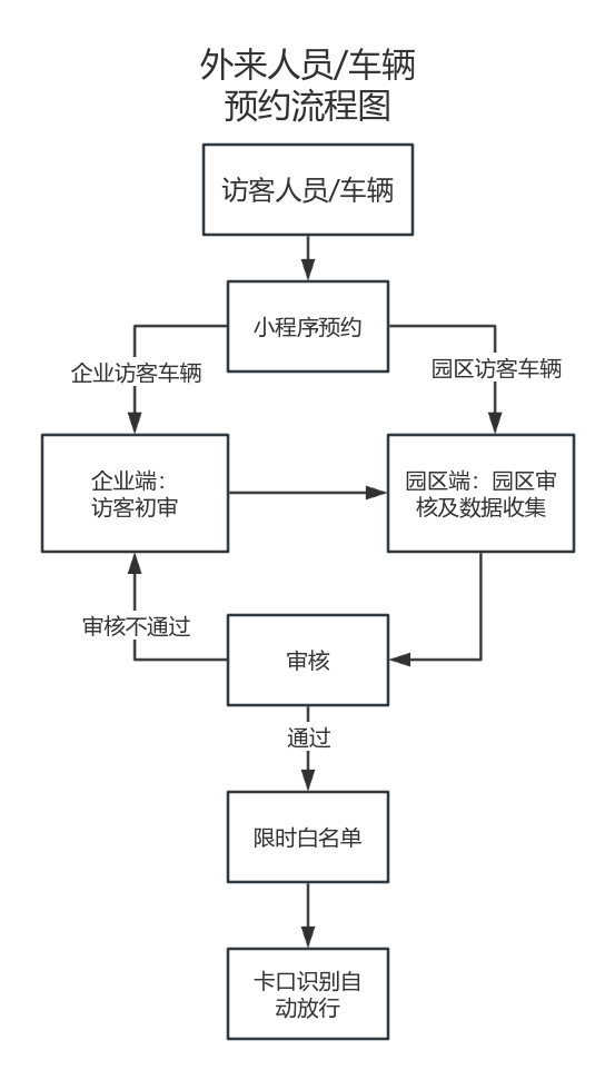 1.访客车辆入园前应提前在微信小程序上进行申请,获到访企业审核、平台运营方复核后方可正常进出产业园。