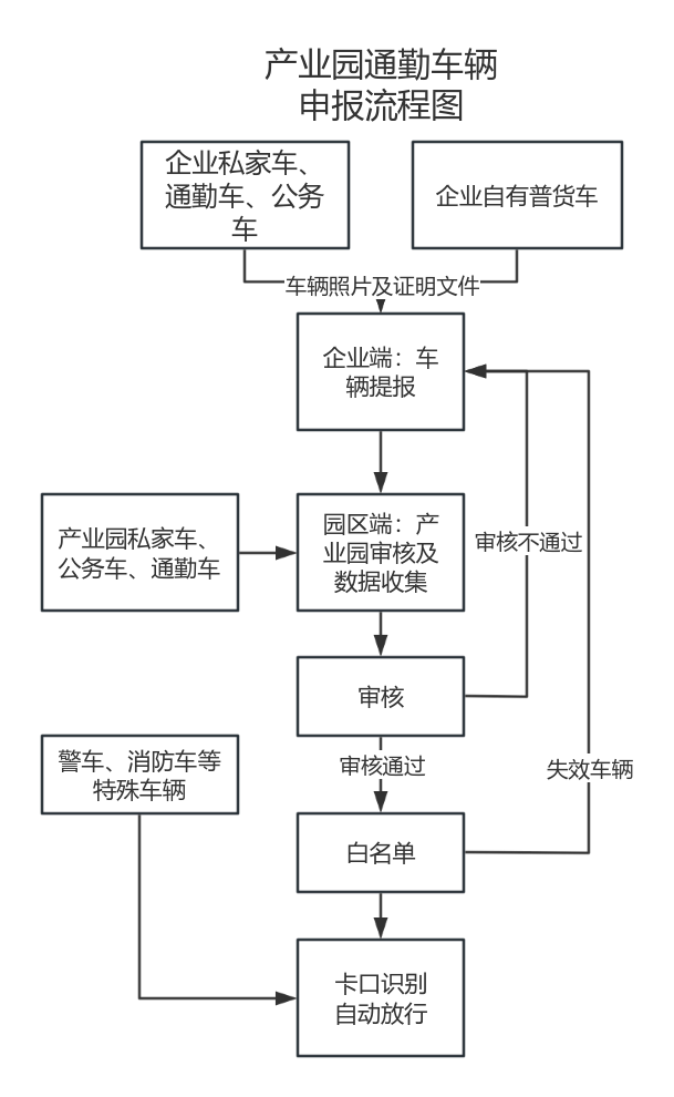 1.产业园内企业自有机动车辆及企业员工机动车辆(均不含摩托车)由各自所属企业提交相关信息,由平台运营方将其列入白名单,3年内有效,到期后由所属企业重新提交信息录入。