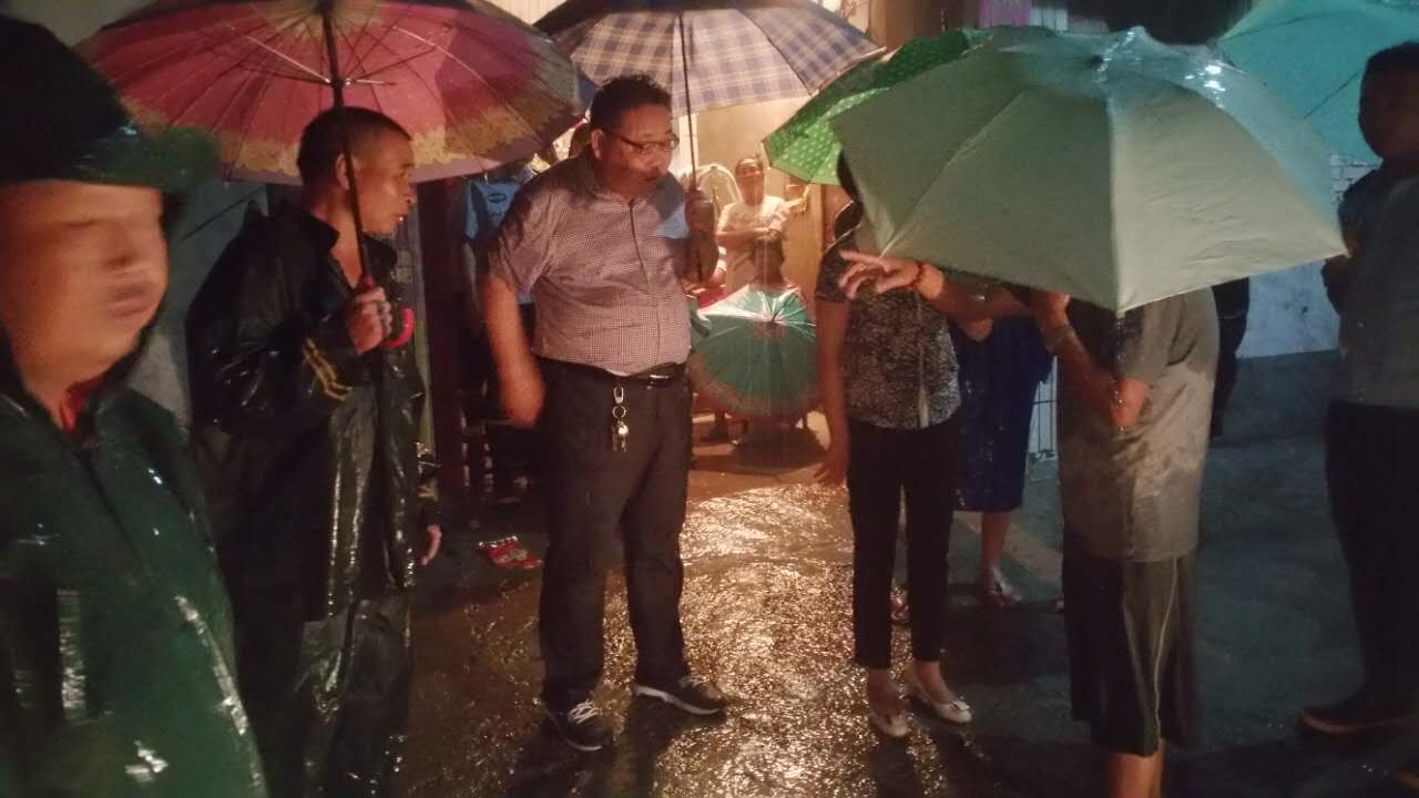 7月19日晚上,上官镇党委、政府全体班子成员冒雨分头走村入户督查指导防汛工作。针对强降雨天气立即启动了《上官镇防汛应急预案》,针对危房户、低保五保等贫困户及时进行了妥善安置。