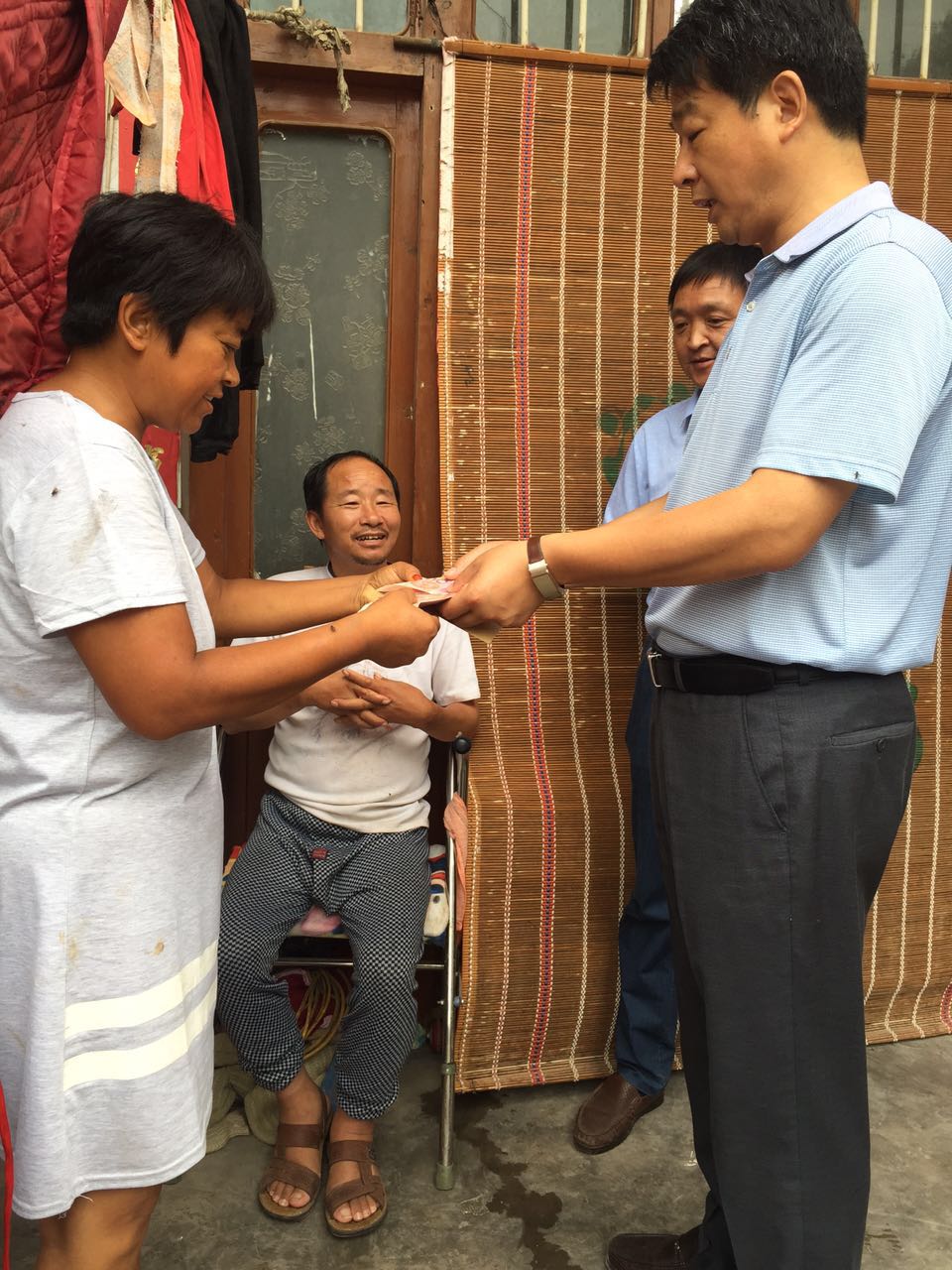 7月14日上午,城关镇主要领导进村入户,看望残疾、重病贫困群众,并为他们送去慰问金。