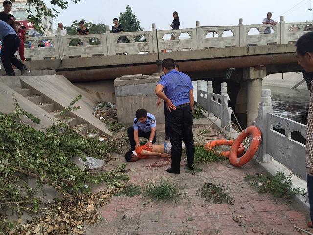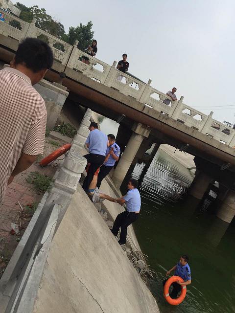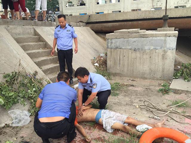 7月6日下午15时许,道口派出所接到群众报警,称在道口镇解放路调节渠桥西侧有人落水,值班民警携带救生器材火速赶往事发地点。到达现场后,民警已看不到落水人的身影,仅能看到有衣服若隐若现漂浮在水面上。辅警王建刚来不及脱衣服,迅速拿起救生圈跳入水中,不顾个人安危潜入水下将落水人员拖出水面,并奋力推到岸边,其他民警合力将落水人员抬上河岸,此时落水男子嘴唇发紫,脸色乌青,身体僵硬,已没有了呼吸。民警立即对该男子进行心肺复苏,同时拨打120急救电话,经过一番紧急施救,该男子呕出大量污物,终于恢复了知觉。120急救人员赶到现场,民警帮助医护人员将该男子抬上救护车送往医院进行抢救治疗,该落水男子最终获救。道口派出所民警舍己救人的壮举,受到了落水男子家属及社会各界群众的高度赞扬。