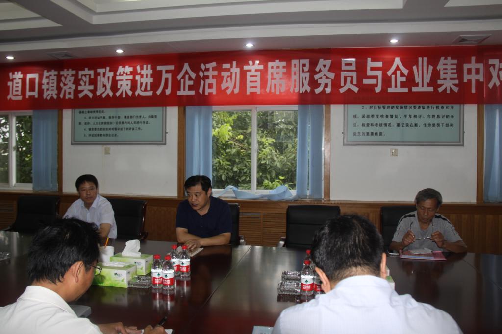 全县政策落实进万企活动动员会召开后,道口镇高度重视、迅速行动,8月19日上午召开了道口镇落实政策进万企活动首席服务员与企业集中对接会,该镇首席服务员、联络员及双隆商贸、维恩木塑、丰利环保等9家重点企业负责人参加了会议,会上大家认真学习了文件精神,并就企业发展问题进行了深入探讨。会议要求,各级各部门要充分认识开展此项工作的重要性,积极贯彻落实上级有关要求,以“政策落实进万企”活动为契机,认真落实首席服务员制度,强化督导服务和跟踪问效,帮助企业排忧解难,增强企业和企业家信心,为稳步增长经济效益、全面完成全年目标任务提供有力支撑。