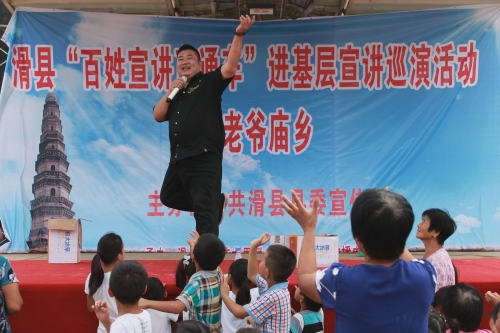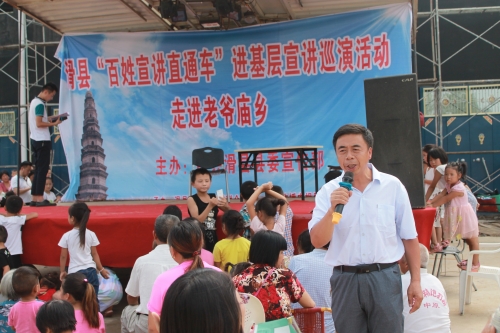 8月10日上午,由县委宣传部主办的滑县“百姓宣传直通车”进基层宣讲巡演活动走进老爷庙乡,老爷庙乡班子成员、全体机关干部、各村两委成员及各村群众500余人一起观看了演出。