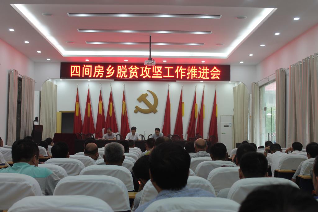 8月9日上午,四间房乡召开脱贫攻坚工作推进会,乡机关包村干部、各村三主干、乡直部门负责人、驻村第一书记共100余人参加会议。