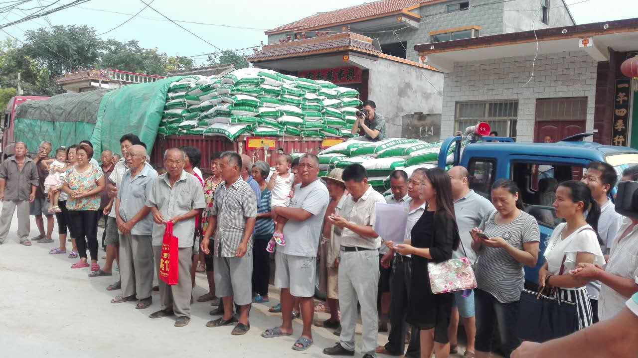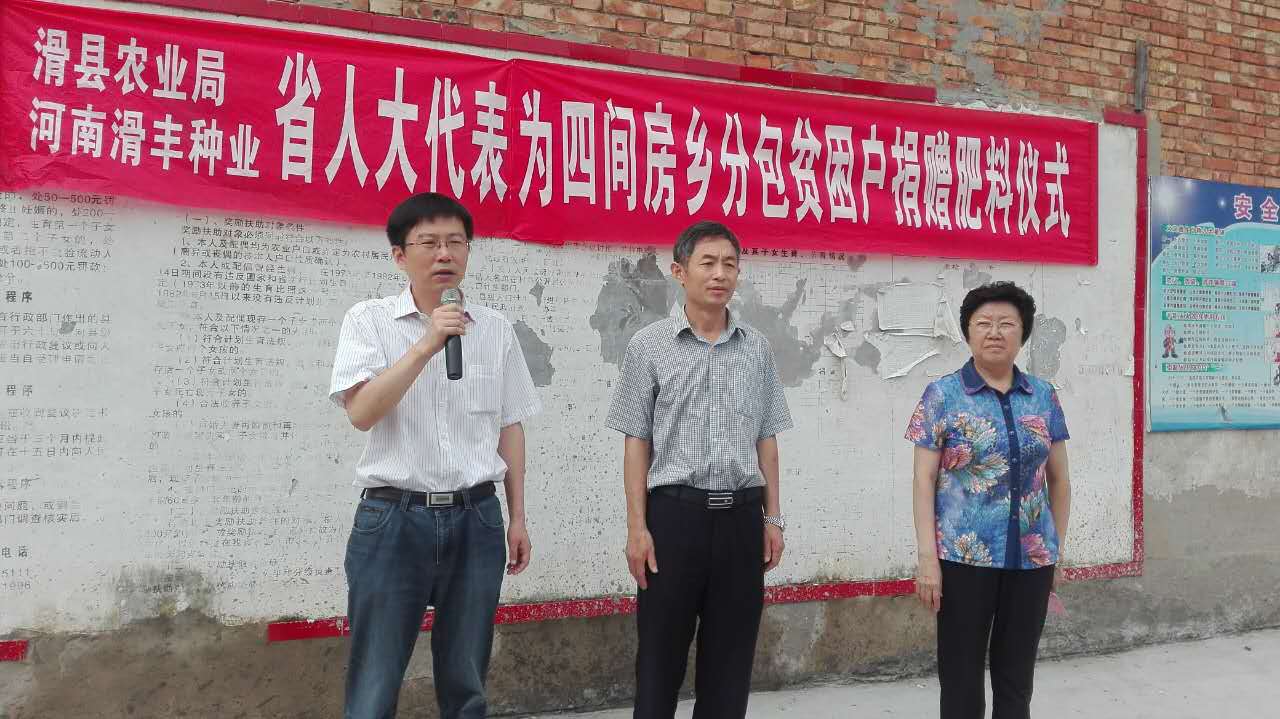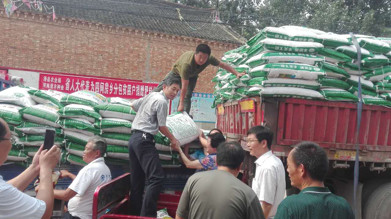 8月4日上午,农业局、滑丰种业为四间房乡贫困户捐赠肥料仪式在唐尔庄村举行。