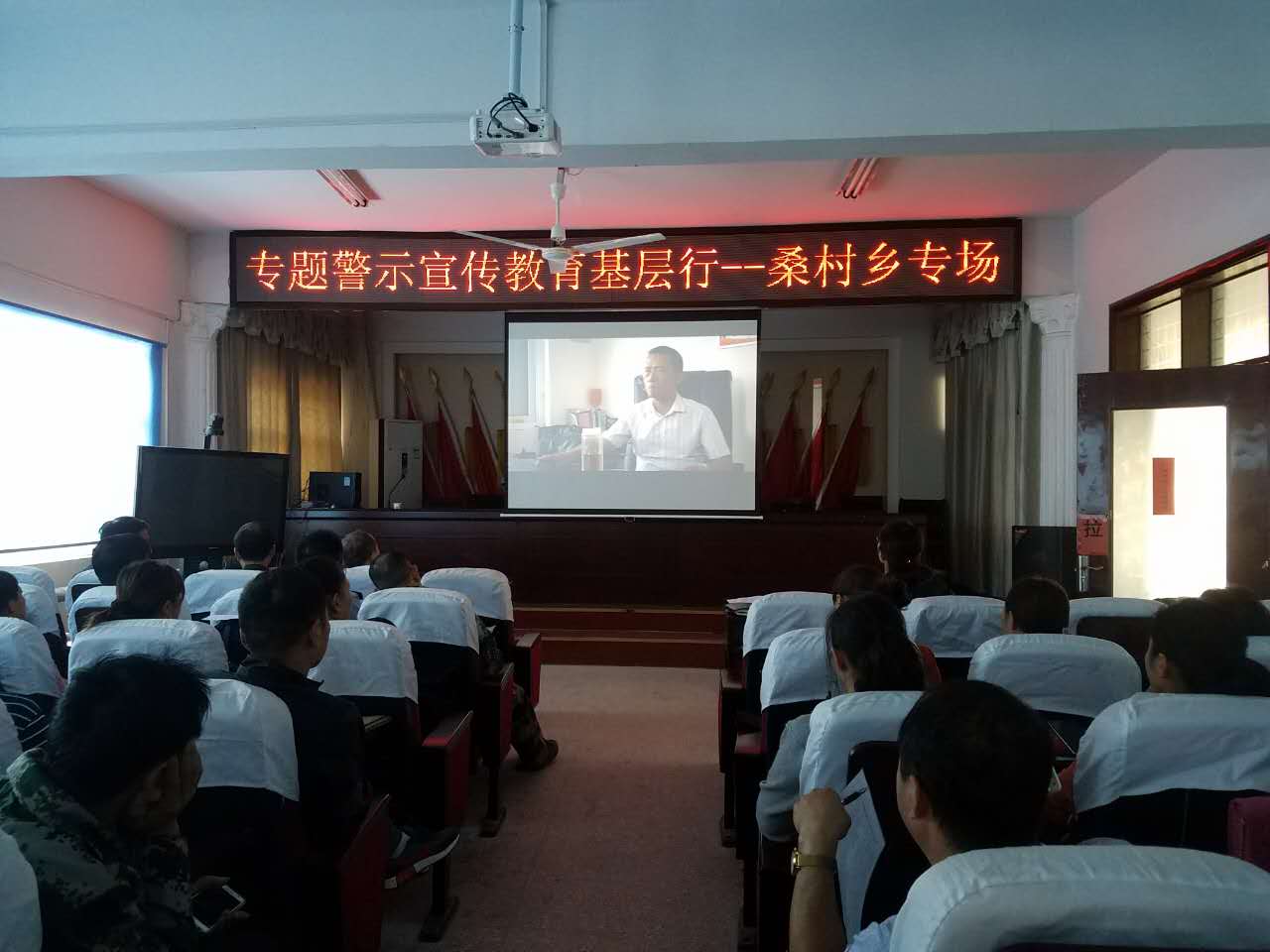 9月20日上午“专题警示宣传教育基层行”走到了桑村乡,乡党政班子全体成员、贫困户驻村第一书记、乡直机关主要负责人、全乡机关干部及34个村“两委”共200余人学习观看警示教育片。观看结束后均表示收到了极大的震动和警示,以后一定坚守纪律,做一名党的合格干部。