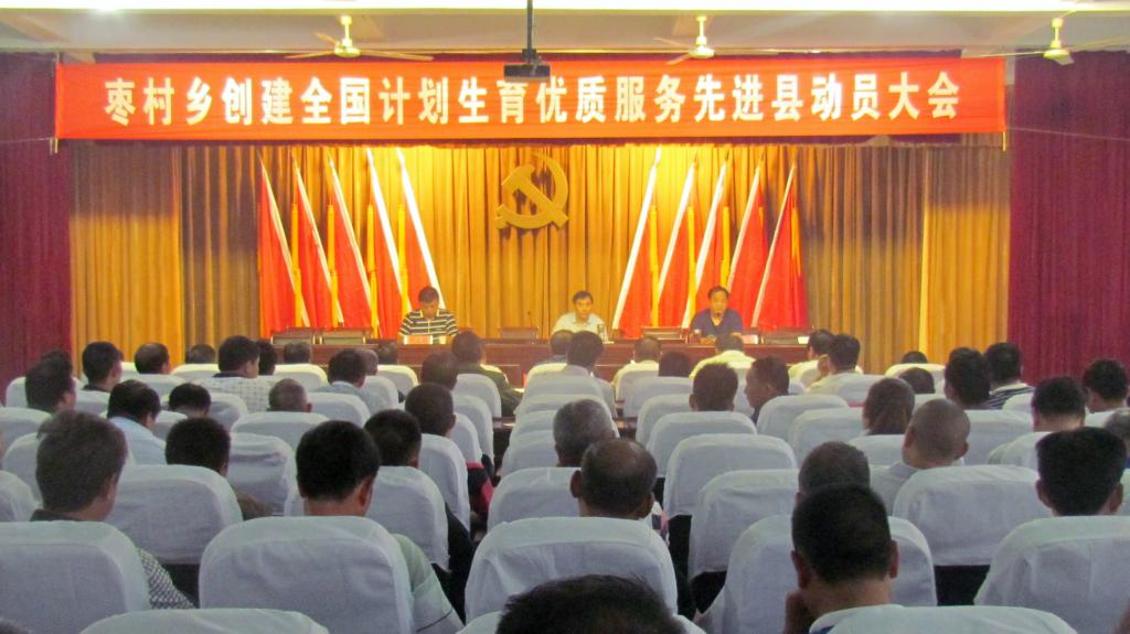 9月13日上午,枣村乡组织全体机关干部职工、乡直部门负责人和40个行政村的支部书记、计生专干,在该乡政府大会议室召开创建全国计划生育优质服务先进县动员大会。