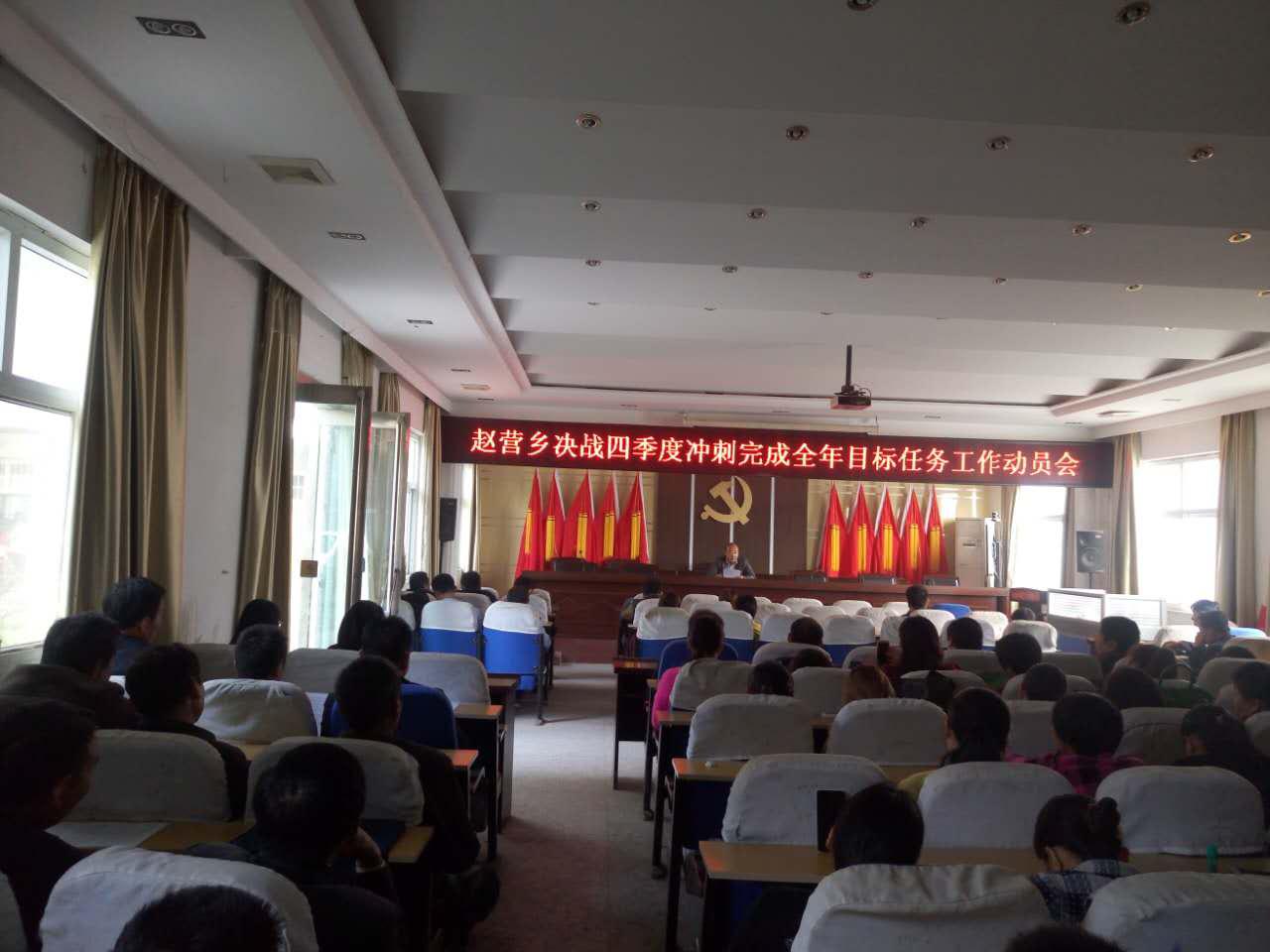 10月19日,赵营乡组织召开决战四季度冲刺完成全年目标任务工作动员会,全体机关干部、各行政村村两委成员参加了此次会议。