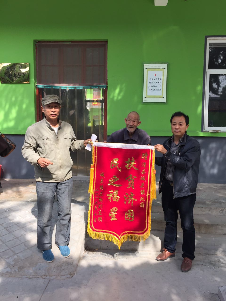 10月13日,城关镇三街村刘东明老人在其亲属的陪伴下来到镇政府,将一面“扶贫济困、民之福星”的锦旗送到了镇扶贫主管领导赵本渠的手中,感谢镇扶贫工作中对刘东明老人的关心和帮助。