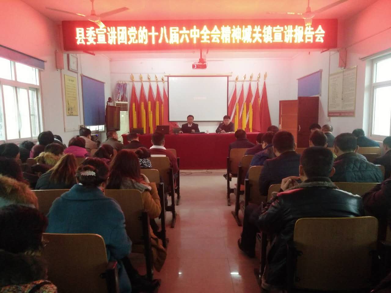 11月22日,城关镇在政府大会议组织召开了党的十八届六中全会精神宣讲报告会,特别邀请县党校教研室主任孙贵卿老师进行专题宣讲,镇机关全体干部职工、47个行政村党支部书记参加了此次宣讲报告会。