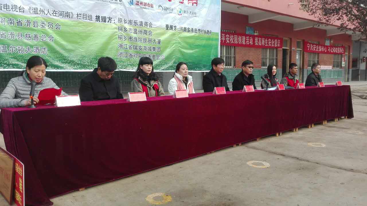 11月23日上午,浙江省和平慈善基金会携手河南省电视台和滑县政协在枣村乡南小屯小学隆重举行扶贫济困捐赠仪式,共向枣村乡的贫困户和贫困学生捐赠价值30余万元的衣服和鞋,以实际行动帮扶贫困人口和弱势群众,有力助推了枣村乡扶贫脱贫工作的深入开展。县政协主席陈俊江、政协副主席陈浩、浙江省和平慈善基金会副会长陈建平、县慈善总会会长候明昌、乡党委书记李红霞等领导出席捐赠仪式。