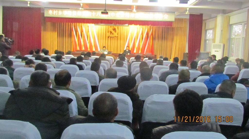 为弘扬十八届六中全会精神,落实全面从严治党工作要求,11月21日下午,该乡组织全体机关干部职工、40个行政村三主干共约220人,在三楼大会议室举行十八届六中全会精神宣讲活动。