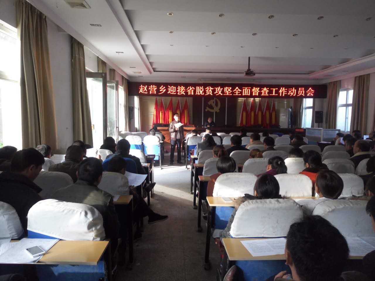 11月10日,赵营乡组织召开迎接省脱贫攻坚全面督查工作动员会,全体帮扶责任人、驻村第一书记参加了此次会议。会议全面传达了迎接省脱贫攻坚全面督查工作文件精神,对入户调查、贫困户信息采集、贫困户卫生、扶贫应知应会内容等工作进行再安排再部署,要求各帮扶责任人迅速行动、及时入户,保质保量完成迎检准备工作。