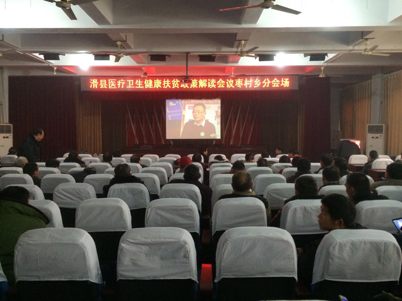 12月19日上午,枣村乡组织40个行政村两委、卫生员和乡机关干部职工及乡直部门负责人在大会议室收听收看了滑县医疗卫生健康扶贫政策解读会。此外,各行政村也设有会场,包村干部、第一书记和各村村干部组织所辖范围内的贫困人员进行了收听收看。