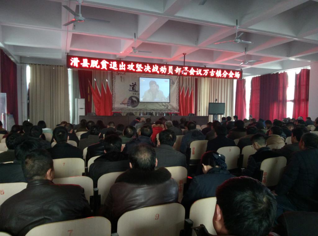 12月3日上午9:00,滑县脱贫退出攻坚决战动员部署会议在县政府大会议召开,万古镇机关全体干部职工、镇直部门负责人、8个贫困村的驻村第一书记和42个行政村的村支部书记、村委会主任在镇政府大会议室收听收看了现场实况直播。