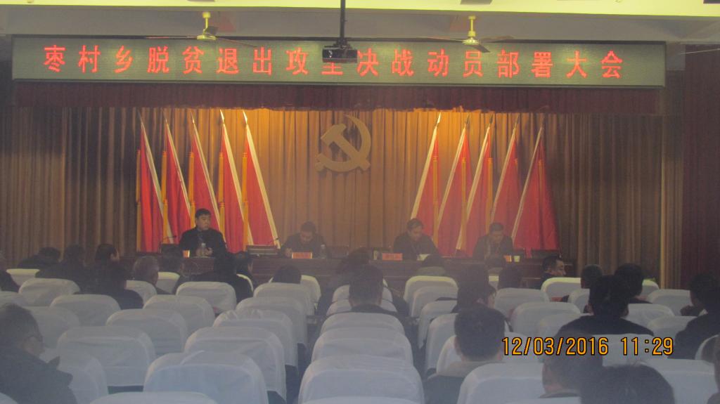 12月3日上午,枣村乡召开脱贫退出攻坚决战动员部署大会,该乡全体机关干部职工、40个行政村三主干约220人参加会议。