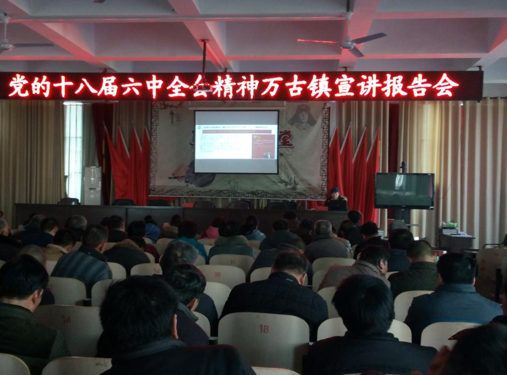 为了引导广大党员干部深入贯彻学习十八届六中全会精神,11月30日下午,万古镇邀请县委宣传团成员、县委党校讲师周霞在政府大会议室对十八届六中全会精神进行了集中宣讲,镇机关全体党员干部、各行政村“村两委”全体成员参加了此次报告会。