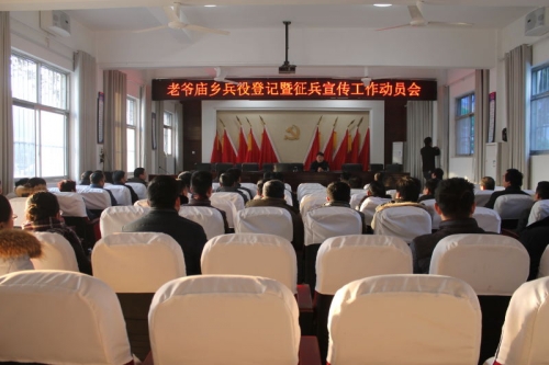 1月22日,老爷庙乡组织乡机关干部全体、各村支部书记参加兵役登记暨征兵宣传工作动员会。会议要各村要尽快开展兵役登记工作,及时了解男性适龄青年底数,动员他们及早在“征兵网”上进行登记,同时各村要充分利用春节前走访慰问等时机,抓好征兵宣传活动,掌握其现实表现和思想动态,鼓励他们参军入伍。为2017年度征兵工作开好头、打好基础,使优秀青年步入军营,保家卫国。