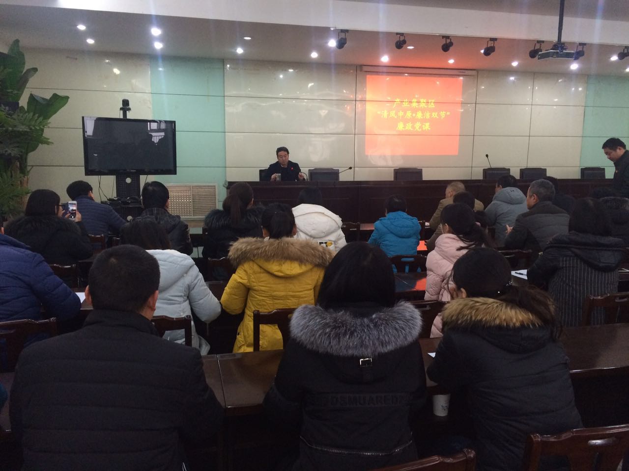 为全面开展党风廉政教育活动,1月17日上午,滑县产业集聚区组织机关全体干部职工举行主题为《清风中原·廉洁双节》的专题廉政党课讲座。廉政党课上,产业集聚区机关全体党员干部共同学习了《关于新形势下党内政治生活的若干准则》和《中国共产党党内监督条例》。随后,全体人员集中观看了《巡堤》、《一步之遥》两部警示教育片。通过认真学习新《准则》新《条例》,观看廉政教育片,使广大党员干部进一步筑牢拒腐防变的思想道德防线,切实增强党性修养和拒腐防变能力。活动上,产业集聚区管委会领导要求并号召大家,要认真理解和把握“准则”和“条例”的主要内容,树立廉政勤政意识,克己奉公、廉洁自律,筑牢“防火墙”,把好“思想关”,构筑产业集聚区坚不可摧、牢不可破的廉政之墙。