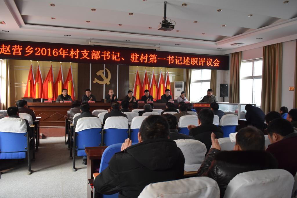 1月17日,赵营乡组织召开2016年村支书、驻村第一书记述职评议会,6名县派驻村第一书记及26个行政村支部书记分别进行发言,大家围绕2016年扶贫、农村基础设施建设等工作总结分析出现的问题,对2017年村级工作进行规划。评议组对驻村第一书记和村支书进行了现场评议,对驻村第一书记和村支书的发言和各项工作予以高度评价,希望大家继续发扬“团结、拼搏、担当、为民”的赵营精神,脚踏实地开展各项工作,共促赵营新局面。