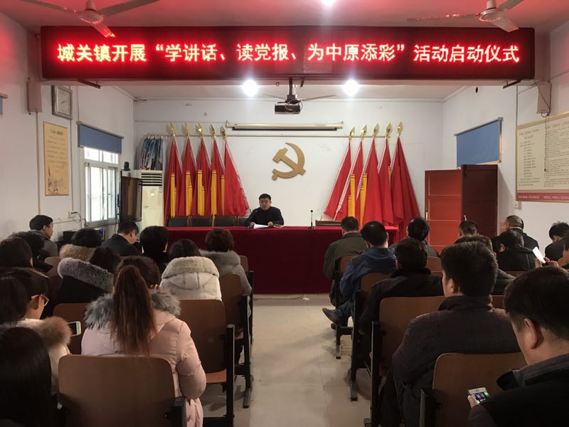 1月12日,城关镇在二楼会议室举行了“学讲话、读党报、为中原添彩”活动启动仪式,镇领导班子及机关全体干部职工参加了仪式。