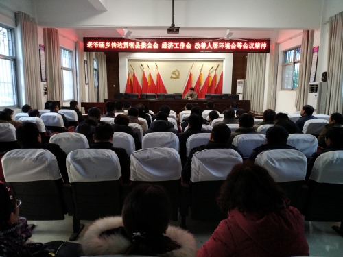 1月10日上午,老爷庙乡组织全体干部召开工作会议,迅速传达贯彻县委全会、经济工作会、改善人居环境会等会议精神。