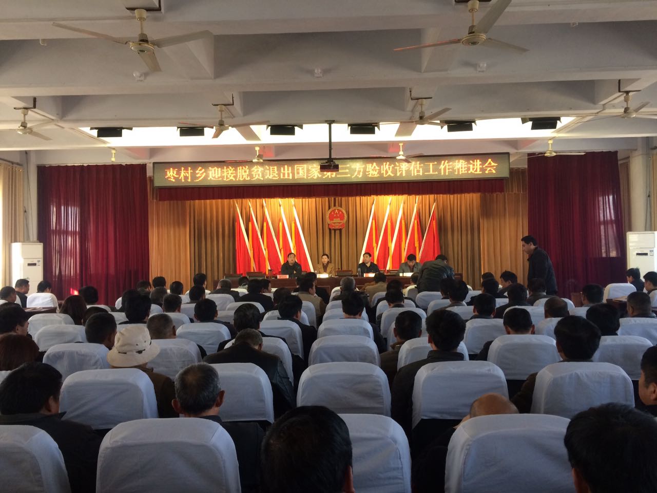 3月26日上午,枣村乡组织贫困村和非贫困村驻村的第一书记、乡包村干部和40个行政村两委班子,在该乡大会议室召开脱贫退出迎接第三方验收评估工作推进会。
