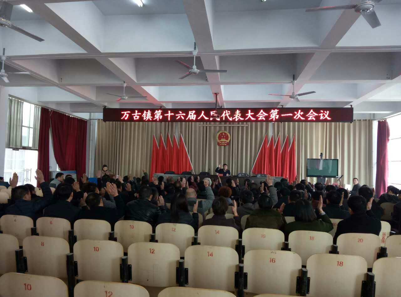会议听取并审议通过了《镇政府工作报告》、《镇人大主席团工作报告》,审议和批准了《2016年镇财政预算、决算执行情况和2017年镇财政预算草案报告》。根据选举法、地方组织法、河南省县乡两级人民代表大会选举实施细则的有关规定,结合万古镇第十六届人民代表大会第一次会议选举办法,选举产生了人大、政府新一届领导班子,新当选的人大主席、镇长、副镇长全部全票当选。